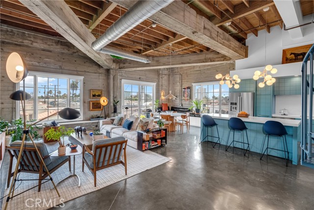 Come see this spectacular penthouse loft in the historic Ebell Theatre at an amazing new price! The building, originally designed and built by CT McGrew in the Spanish renaissance architectural style, has an incredibly detailed Churrigueresque facade. As you enter this south-facing loft, you notice the incredible 15 foot ceilings on the main level which includes the primary bedroom, kitchen, walk-in closet, stackable laundry and sliding doors to an outdoor balcony. The 2nd level is accessed by a spiral staircase where an office/guest room and half bath is located. As you pass through the glass sliding doors on the second level, you are immediately struck by the amazing panoramic views of the city and harbor. Imagine yourself lounging on the private roof top patio sipping wine and enjoying the wonderful breeze and incredible view. Two secure underground side-by-side parking spaces are included as well as a fitness room for residents. The loft complex, in a quiet residential neighborhood, is just a few blocks from the beach and surrounded by eclectic shops and restaurants. Fell out of escrow. Actively for sale again.