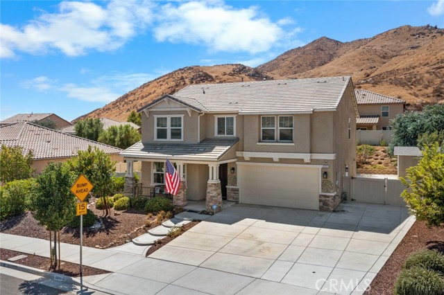 Discover your perfect retreat within the Cove community in this spacious 5-bedroom, 2.75-bath home featuring PAID SunPower solar panels. Enjoy a casual lifestyle with a covered porch, upgraded entry concrete steps, private patio, island kitchen with Corian countertops, stainless steel appliances, pantry closet, 9-ft ceilings, and including RV parking and gate. The expansive backyard with newly installed retaining wall, fruit trees (santa rosa plum, lemon, avocado, cherimoya, pomegranate, pear, apple trees) and a 10x10 storage shed. With a bedroom on the main floor, comfort is ensured with central air conditioning/heating, kinetico water softener, alkaline water filtration system, and an upstairs laundry room. The primary ensuite includes a soaking tub, separate shower, and walk-in closet. Relax in the additional loft space, and enjoy being just steps away from the Cove Park. Check out the virtual 360 degree tour.