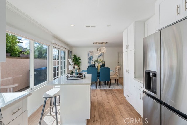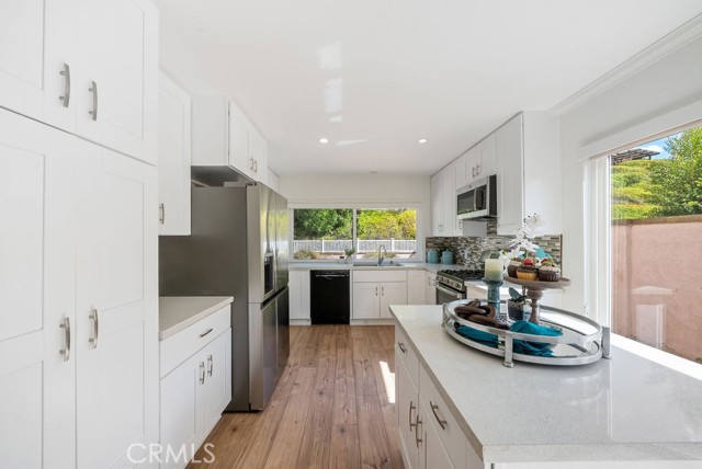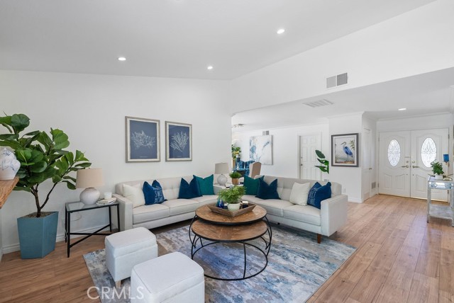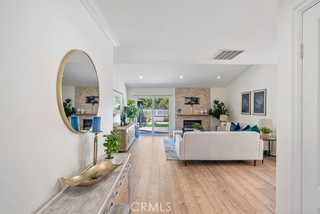 Discover your dream home in the heart of Mission Viejo! This beautifully remodeled, single-level residence sits on a large, private lot in the sought-after Castille neighborhood (New Castille, Central CA2). With 4 bedrooms and 2 bathrooms across 1,640 sq ft of elegant living space, this home blends comfort and style from top to bottom. Step inside to soaring ceilings, crown molding, recessed lighting and a whole-house fan. The spacious living room features a custom fireplace and flows seamlessly into a chef's kitchen equipped with newer cabinetry, quartz countertops, stainless steel appliances, a stylish tile & cut-glass backsplash and an island perfect for casual dining or entertaining. Dual-pane windows and sliding doors open to reveal a backyard oasis boasting low-maintenance artificial turf, a custom fire pit, and ample room for outdoor entertaining. Other upgrades include vinyl plank flooring throughout, PEX re-piping, epoxy-floored 2-car attached garage with natural light, plus enhanced privacy and lush landscaping both front and rear. With its prime location, enjoy easy access to Lake Mission Viejo, local parks, shopping, and top-rated schools: Castille Elementary, Newhart Middle, and Capistrano Valley High. This gem represents refined single-story living in one of Mission Viejo's most desirable settings.