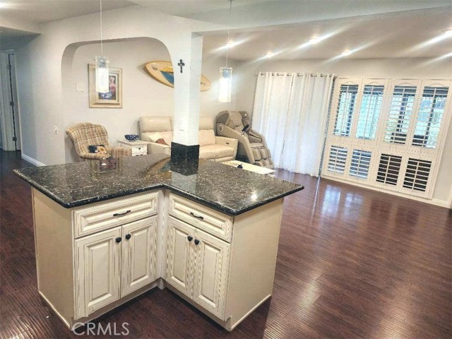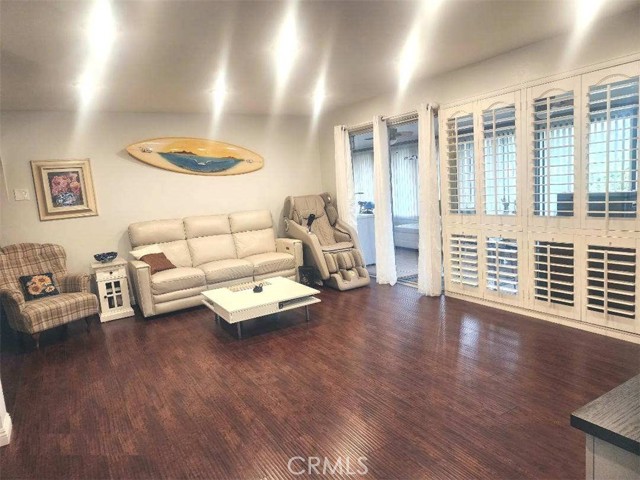 PRICED TO SELL – DON'T MISS THIS ONE! Step into this beautifully remodeled, light-filled Casa Linda model – a rare, ground-level home with no stairs. Enjoy the convenience of parking right in front of your manor for easy grocery trips, or use the nearby carport just steps away. This elegant home features a gourmet open kitchen with granite countertops, a center island, and a water-purifier line plumbed directly to the refrigerator for ice and chilled water. Dual-pane windows, smooth ceilings, designer light fixtures, and engineered wood flooring (except tile flooring in the bathrooms) create a bright, modern feel throughout. The primary suite boasts mirrored closet doors, an upgraded bathroom with a walk-in shower and glass door, plus a charming window. A stacked washer/dryer is tucked neatly into the primary bath closet for ultimate convenience. The second bathroom features a shower-tub combo with glass sliding doors. Enjoy the enclosed front patio for extra living space (not included in the square footage) – perfect for your hobby room, exercise bicycle, or morning coffee or evening relaxation. It even has handicap access toward outside of the bldg via walker or wheel chair. This is a truly one-of-a-kind home for the sophisticated buyer. Visit today before it's gone, and enjoy the life style of the Laguna Woods Village, Southern California, Orange County's best kept 55 plus active retirement community with numerous amenities: 5 swimming pools, 7 Clubhouses, 2 fitness centers, a 27 hole golf course with its own clubhouse & a restaurant, and a 9 hole par 3 executive golf course, an equestrian center, wood workshop, a ceramic/sculpture studio with kiln, sewing room, tennis complex, and much more. Over 250 social clubs to join. Free bus service within the Village or to the nearby shopping & medical centers. 24 hour guard gated community for your safety, located close to freeways, medical facilities and approx. 7 miles to Laguna Beach.