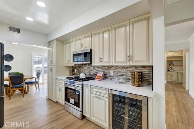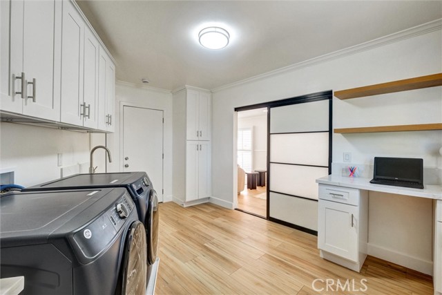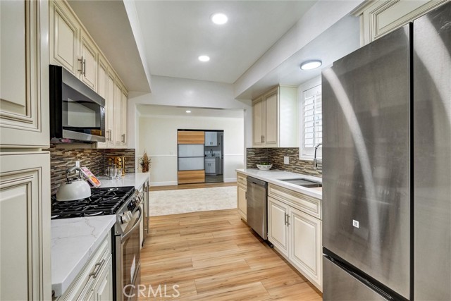 Elegant Newly Remodeled Home in Coveted New Altadena!!! Experience refined living in this beautifully remodeled 3-bedroom, 2-bath residence, ideally located in the highly sought-after New Altadena community. Designed with timeless sophistication and modern comfort, this turnkey home is truly one of a kind. Freshly painted inside and out, the property makes a striking first impression with its Chardonnay Stone facade and custom front door, welcoming abundant natural light into the entryway. Wide-plank Elland Road Elm flooring by Home Decorators Collection flows seamlessly throughout, connecting the formal living room, inviting dining room, and a separate family retreat. A versatile laundry/multipurpose room further enhances functionality. The kitchen is a true showpiece, featuring Antique White cabinetry with elegant crown molding, Calacatta quartz countertops, and brand-new stainless-steel appliances, including refrigerator, range, microwave, wine cooler, washer, and dryer. Both bathrooms have been fully remodeled with LED shower panel systems that blend sleek design with spa-like luxury; the master bathroom is further elevated with timeless Tuscany tile. Each bedroom is thoughtfully appointed with SKYTTA sliding closet doors, plantation shutters, and ceiling fans, while crown molding and upgraded baseboards add a refined finishing touch throughout. Plantation shutters also frame the sliding glass doors, providing both elegance and privacy. Outdoors, a spacious backyard and side yard offer the perfect setting for entertaining or private relaxation, complemented by a two-car attached garage with ample storage. Blending stylish upgrades with classic character, this residence is a rare opportunity in a rapidly appreciating neighborhood, truly a home not to be missed.