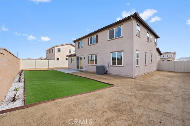 Welcome to Luxury Living at 14417 Buvan Court, Moreno Valley, CA 92555. Discover this newly constructed luxury home nestled in a cul-de-sac, designed for both elegance and functionality. ***PAID-OFF SOLAR PANELS*** make this home energy-efficient and cost-effective. As you step inside, you'll immediately notice the open floor plan bathed in natural light, creating a warm and inviting atmosphere. The spacious living room features a cozy fireplace, seamlessly flowing into the dining area and a chef-inspired European-style kitchen — perfect for entertaining. A convenient half-bath is also available for guests. This home boasts beautiful wood flooring throughout and elegant tile in wet areas. A standout feature is the attached 2-bedroom, 1-bath ADU with its own private entrance, ideal for rental income or accommodating family members. Upstairs, sleek glass railings lead you to three additional bedrooms, including a primary suite with a spacious walk-in closet, built-in shelving, and a custom-designed European-style bathroom featuring a luxurious walk-in shower. A dedicated laundry room adds to the home's convenience. Step outside to a versatile backyard, perfect for relaxation, entertaining guests, or hosting barbecues. You'll have the opportunity to customize the landscaping to suit your style. The home also includes a custom-designed two-car garage. Situated in a highly desirable community, this property offers easy access to shopping centers, restaurants, and Freeway 60. This isn't just a home — it's THE home.