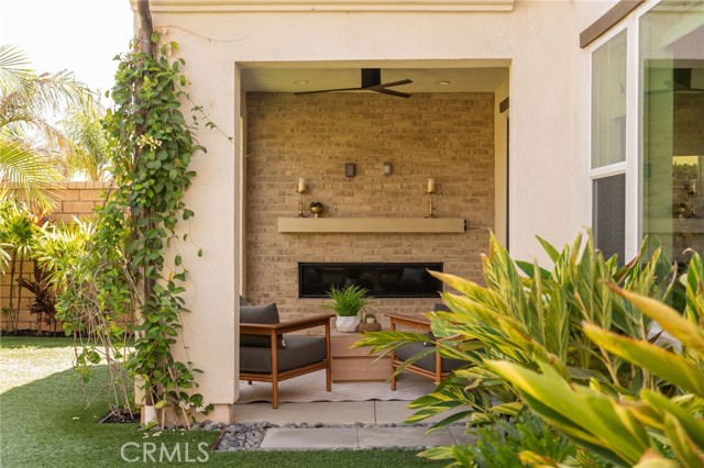 Welcome to this breathtaking 4-bedroom, 3-bathroom home built in 2021, where modern design meets everyday comfort. From the moment you step inside, you'll notice the meticulous attention to detail and premium upgrades that make this home truly one of a kind. The chef-inspired kitchen boasts sleek GE appliances, an upgraded vent hood, granite counters, and a filtered water faucet, all designed for both style and function. A smart home system with Ring door camera, built-in Wi-Fi extenders, and solar panels keeps life connected and efficient, while the downstairs guest bedroom offers flexibility for visitors or multi-generational living. Step outside to your own tropical retreat. The spacious backyard features premium turf, lush landscaping, and a timed irrigation system. Gather in the California room with its cozy fireplace and outdoor TV setup, perfect for entertaining year-round. The two-car garage is fully finished with epoxy flooring, ample built-in storage, and 240v wiring ready for your EV charger. Additional upgrades include a whole-home water softener and energy-efficient systems throughout. All this in a private gated community near top-rated schools, shopping, dining, and everyday conveniences even a grocery store within walking distance. This home truly has it all! Luxury, efficiency, and comfort wrapped into one incredible package.