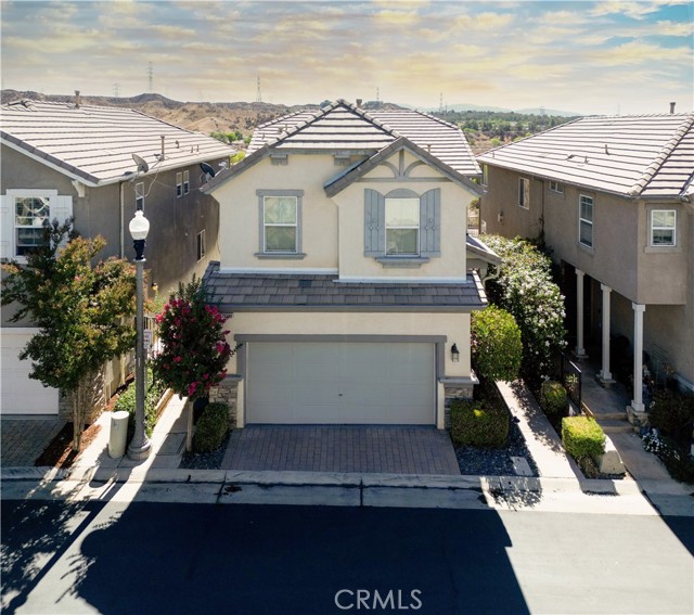 Beautiful Tesoro de Valle Home with Mountain & Valley Views! This stunning 4-bedroom, 3-bathroom residence offering 1,798 sq. ft. of living space in the highly desirable Canterbury community of Tesoro de Valle. Built in 2005, this two-story home combines modern upgrades, spacious living areas, and resort-style amenities in one of Valencia's most sought-after neighborhoods. The light-filled interior boasts high ceilings, recessed lighting, wood and tile flooring, and double-pane windows throughout. The inviting living room features a cozy fireplace, while the gourmet kitchen is designed for both everyday living and entertaining with granite countertops, breakfast bar, ample cabinetry, and stainless steel appliances including refrigerator, dishwasher, microwave, gas range, oven, and cooktop. The open floor plan flows effortlessly into the dining and family areas, making it ideal for gatherings. All four bedrooms are located upstairs, including a spacious primary suite with mountain and valley views, a luxurious bathroom with dual sinks, soaking tub, walk-in shower, and a large closet. Secondary bedrooms are generously sized and perfect for family, guests, or a home office. Bathrooms feature modern tile counters, walk-in shower, and shower-in-tub options. Additional highlights include: Central air & heat for year-round comfort, individual laundry room with washer/dryer hookups, attached 2-car garage with direct access, ceiling fans, smoke detectors, and energy-efficient upgrades. Step outside to enjoy a large front and backyard with an irregular-shaped lot, offering endless potential for entertaining, play, or future expansion. Living in Tesoro de Valle means access to unmatched HOA amenities, including a sparkling pool, spa, clubhouse, gym/exercise room, tennis courts, playgrounds, hiking trails, and beautifully landscaped common areas — all with low monthly dues. Conveniently located near top-rated schools, shopping, dining, and freeway access. Don't miss your chance to own this move-in ready gem with panoramic views in one of Valencia's premier communities. Schedule your private showing today!