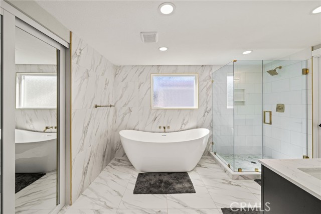 Step into a beautifully renovated home where every detail has been thoughtfully designed for style, comfort and convenience. This home blends modern design with energy efficiency, creating a rare opportunity that's truly move in ready. You are greeted with a new double entry door that leads right into a spacious open-concept layout filled with abundant natural light creating a bright and inviting atmosphere. Enjoy a modern kitchen with quartz counters, waterfall breakfast bar, and new appliances. Bathrooms are fully renovated with upgraded plumbing. Additional highlights include new dual tone windows, recessed lighting, luxury vinyl plank flooring, and custom fireplace surround. A new contemporary garage door with epoxy flooring, a new electrical panel solar ready and Tesla Universal EV charger. Outdoor living shines with a new paver patio with matching garden wall with accent lighting, a new Rachio irrigation system that automatically optimize watering to maintain a healthy lawn. This stunning home has both beauty and functionality and is ready for its next chapter!