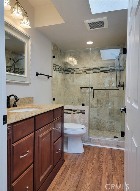 Beautifully Remodeled Villa Lugano Condo with Garage in the 55+ Community of Laguna Woods Welcome to this stunning 2-bedroom, 2-bath Villa Lugano that has been thoughtfully remodeled into an elegant and functional retreat. Step inside to discover wood-style laminate flooring and soft neutral tones that create a warm, inviting ambiance. The spacious living area features an open floor plan with smooth ceilings, recessed lighting, crown molding, plantation shutters, and a ceiling fan — perfect for both comfort and style. The modern kitchen boasts granite countertops, stainless steel appliances, recessed lighting, and ample dark wood cabinets. Enjoy year-round comfort with central heat and air conditioning. A convenient side-by-side laundry area is located in the hallway. Both bedrooms include ceiling fans, new carpet, and fresh paint, providing a clean and restful environment. A private balcony spans the entire length of the home, offering peaceful treetop views — with one half enclosed for year-round enjoyment. Both bathrooms have been beautifully remodeled and feature walk-in showers for easy access. An oversized garage with ample storage and a private driveway add extra convenience and value. Experience the best of Laguna Woods living in this gorgeous home — close to all the amenities this vibrant 55+ community has to offer!