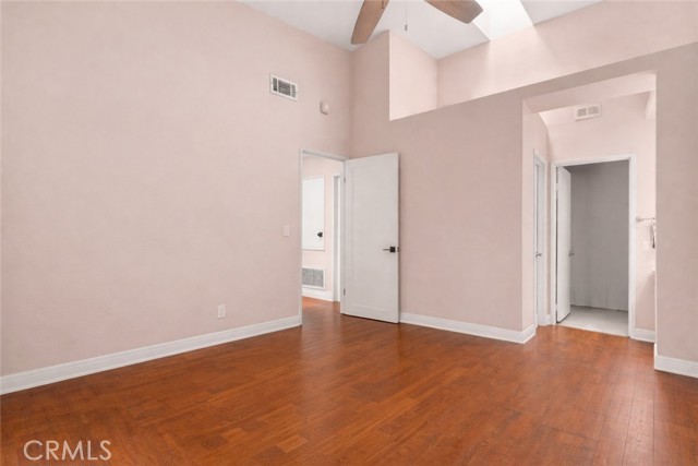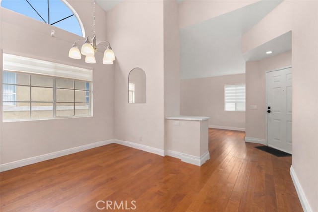 ***Highly motivated Seller*** Welcome to the coveted, The Hills Community. This spacious upstairs end-unit offers nearly 1,300 SQFT of comfortable living with 2 bedrooms and 2 baths. Beautiful engineered hardwood floors extend from the entry into the living and dining rooms as well as both bedrooms. It exhibits high ceilings and no one above. The large living room is filled with natural light and features a cozy gas fireplace and sliding glass doors that open to a private balcony. A versatile formal dining area serve as a home office or playroom. A well-appointed kitchen is equipped with stainless steel appliances, abundant cabinet & counter space, and a breakfast nook, with direct access to the balcony. Boasting high-sloped ceilings with a skylight, the primary suite is sure enlighten the senses. Its dressing area is adjacent to the walk-in closet, and a refreshed bathroom with a brand-new vanity, marble countertop, and modern faucet. The second bedroom is generously sized and also includes its own walk-in closet. A full-size shower completes the hallway guest bathroom. Additional highlights include an indoor laundry room conveniently located near the bedrooms (with extra storage space and a water heater) plus an exterior storage closet near the front entry. Vertical blinds can be found throughout and as well as ceiling fans in the bedrooms for added comfort and functionality. Residents of The Hills enjoy resort-style amenities including 2 pools, 3 spas, tennis courts, a fitness center, clubhouse, and 2 playgrounds. Conveniently located near SAVI Ranch shopping, dining, the 91 freeway, and the 241 toll road, and award winning schools.