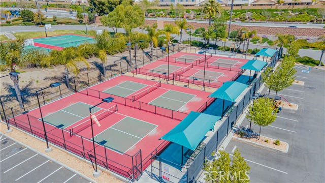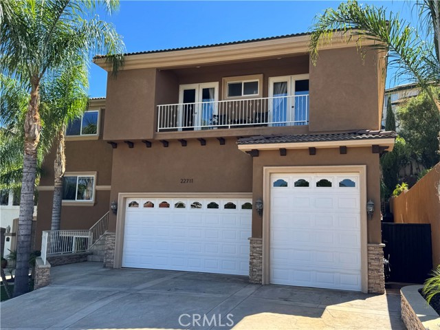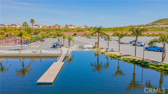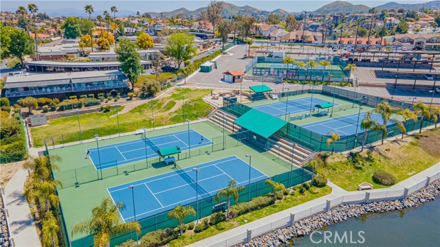 Welcome to this custom Mediterranean tri-level home in the coveted Canyon Lake community. Offering 5 bedrooms — each with its own private bathroom and walk-in closet — this 3,505 sq ft residence is situated on an 8,276 sq ft lot designed for elegance and easy living. From the moment you arrive, the curb appeal captivates with Mediterranean architecture, a 3-car epoxy-finished garage (including RV/golf cart space), lush palms on auto-drip, and astro turf with decorative rock for a true island vibe and low-maintenance lifestyle. A limestone-trimmed travertine staircase leads you to custom beveled glass double doors. Inside, soaring 19' ceilings and a stunning diamond-pattern travertine foyer welcome you into the grand great room — an open living and kitchen space designed for entertaining. The family room features a wood-burning fireplace, wet bar with wine refrigerator, custom shelving, all flowing seamlessly into a wow-factor chef's double granite island Kitchen with stainless steel appliances to include: dual ovens, microwave, dishwasher, refrigerator, and dual sink. This dream entertaining kitchen is also well equipped with a walk-in pantry, side door to the epoxy-poured garage, and breathtaking backyard views. Step outside to a private retreat with a covered patio, gazebo, a new fountain, shed, and terraced garden spaces framed by astroturf and retaining wall with side yard ladder access to the fruit trees. The main level primary suite offers peaceful community views, a walk-in closet, and a spa-inspired bathroom with travertine finishes, tub/shower, and glass-enclosed walk-in shower. Laundry room features granite counters, a sink, and tons of cabinetry. The lower 3rd level game room/6th bedroom features a pool table, granite bar, sink, refrig., and walk-in closet & window with views. Upstairs, the Romeo & Juliet balcony overlooks the great room. Three additional bedrooms include two with a Jack-and-Jill bath and shared access to an expansive covered balcony. The upstairs primary massive retreat features its own balcony, spa-like bath with soaking tub, walk-in shower, dual vanities, and a custom closet organizer. Located within Canyon Lake's 24-hour guarded gate community, you'll enjoy resort-style amenities including a private 525-acre lake, an 18-hole SCGA-rated golf course with Restaurant, lakefront pool & clubhouse with banquet facilities, RV park, equestrian center, tennis, pickleball, beaches, 14 parks, happy camp, boat docks & more.