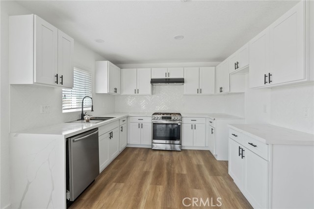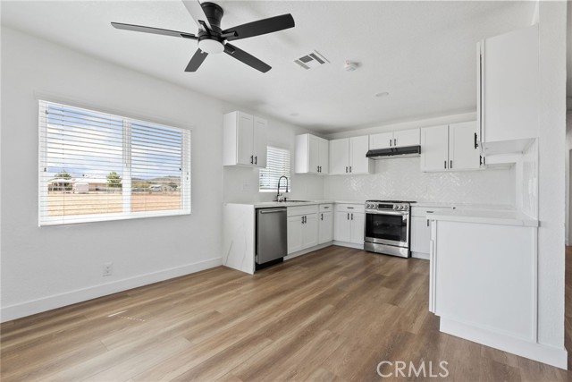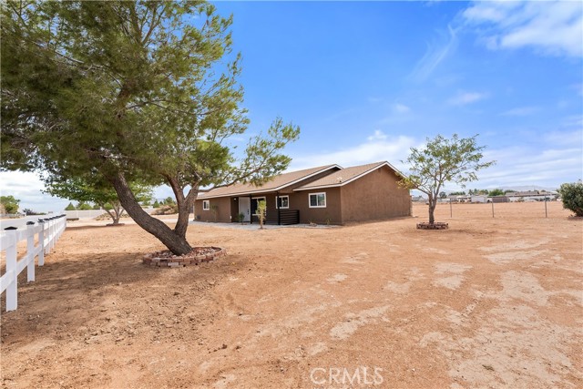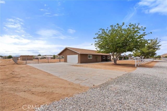 Welcome to 20631 Zuni Road in Apple Valley, a completely renovated three bedroom, two bathroom home sitting on a full acre of land. Every detail has been thoughtfully redone, making this property truly turnkey for its next owner. Inside, the open layout feels light and inviting with new dual pane windows, fresh paint, recessed lighting, and brand new vinyl plank flooring throughout. The kitchen has been completely rebuilt with quartz countertops with a waterfall end cap, a large single basin sink including workstation, custom herringbone tile backsplash, new shaker cabinets, and stainless steel appliances. Both bathrooms have been remodeled with new tubs, showers, vanities, quartz tiling, and matte black fixtures that bring a modern touch. This home is not just about the interior. Outside, you'll find a brand new exterior paint job, drought tolerant landscaping in the front yard, and a white picket fence accented with solar powered post lights that give the property a charming curb appeal. On top of that, there is a large 15 by 20 shed that provides extra storage or space for projects. With a lot size of 43,560 square feet, there's plenty of room for RV parking, outdoor toys, animals, or even future expansion. Located in the desirable High Desert community of Apple Valley, this property combines modern living with wide open space and stunning views. It's move-in ready and set up to be enjoyed from day one. This is the perfect opportunity for a buyer looking for a fresh, stylish home with land and flexibility to grow.