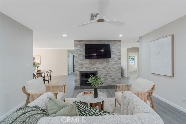 This beautifully maintained home features an open and inviting floor plan, spanning 2,056 sq. ft. of living space on a 7,705 sq. ft. lot, making it perfect for comfortable family living. It features three spacious bedrooms and three bathrooms, including two en-suite bedrooms for added comfort and privacy. At the heart of the home, a cozy fireplace adds warmth and charm while seamlessly connecting the living room, family room, and dining areas. The backyard is perfect for family fun and entertaining, featuring a sparkling pool for endless enjoyment. Ideally located just a short walk from Rosemont Middle School and Monte Vista Elementary School, this home is perfect for families who value community, convenience, and walkability. Additional highlights include solar panels, an EV charger, and a washer and dryer in the attached two-car garage.