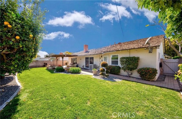 Welcome to this beautifully upgraded home in the heart of Fullerton! This charming residence is sure to impress with its thoughtful details, modern upgrades, and inviting atmosphere. From the moment you arrive, you'll be greeted by a beautifully manicured front lawn and a distinctive mosaic compass inlay on the driveway that sets this home apart. Step inside to discover a stunningly remodeled kitchen featuring sleek granite countertops, double ovens, a 4-burner cooktop, and a stainless steel dishwasher – the perfect setting for cooking, dining, and entertaining. This home offers 3 spacious bedrooms, each enhanced with mirrored closet doors for a touch of elegance. The primary bathroom has been thoughtfully redesigned with granite countertops, Travertine accents, and a generous walk-in shower that creates a true spa-like retreat. The home also features brand new flooring throughout, fresh interior and exterior paint, newly installed window roller shutters, noise-reducing vinyl double-pane windows and sliding door for comfort and efficiency, central air conditioning and heating, and a convenient inside laundry room. For added peace of mind, the owner has also completed termite work. The family room opens to a serene backyard oasis where you can enjoy your morning coffee or host gatherings. The yard features a covered patio, a tranquil water fountain, and decorative concrete pavers – an ideal space for relaxation and entertainment. This home perfectly blends comfort, functionality, and style – truly a must-see property!