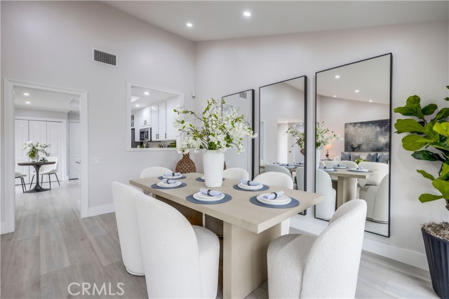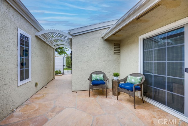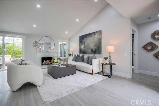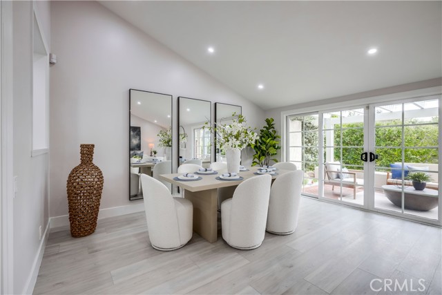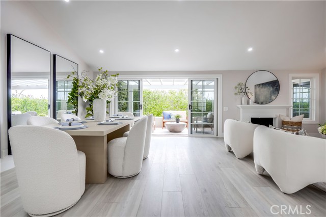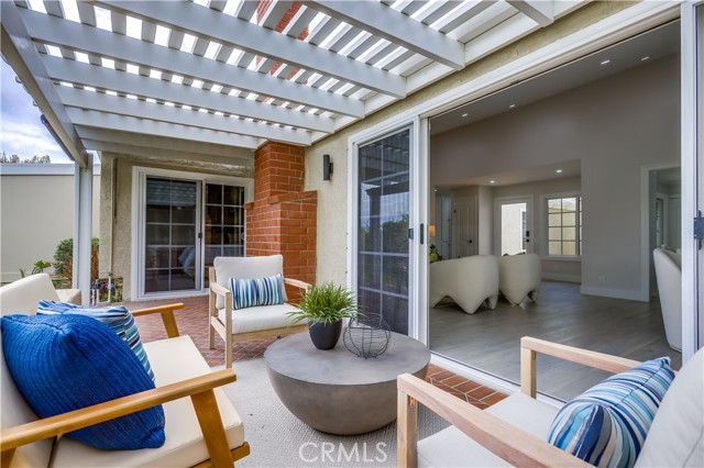 Newly remodeled and thoughtfully upgraded throughout, this prized single level beauty is a private oasis, ideally situated at the end of a quiet cul-de-sac, a Crown Jewel superbly located in the highly desirable 55+ Monarch Summit II community, offering the very best in coastal living! Pass through the private gated courtyard welcoming you to the home. Step inside and soak in the light filled freshly painted interior boasting new wide plank laminate floors, LED recessed lighting, vaulted ceilings, and an open concept, well-designed, floor plan with direct access to outdoor spaces from every room, creating a superb living environment. The living room is the perfect gathering space around the centerpiece fireplace and is open to the dining area with direct access to the backyard patio creating an ideal indoor-outdoor living space perfect for entertaining. The sparkling kitchen is a dream with new Quartz countertops, updated hardware and pulls, matching stainless steel appliances, new faucet, and a sunny breakfast nook which opens to the front courtyard, a soothing space for morning coffee with a loved one. The primary bedroom suite is a tranquil retreat with vaulted ceilings, direct access to the backyard patio, two closets with updated closet doors and built-in closet organizers, and a sleek updated primary bathroom with Quartz topped dual vanity, new faucets and hardware, updated lighting, and a gorgeous, newly remodeled step-in shower with frameless glass enclosure, custom tile surround, and new shower fixtures. The secondary bedroom also has high vaulted ceilings, sliders opening to the private front courtyard, and mirrored closet doors. The guest bath has been stylishly updated with new faucet and fixtures, updated lighting, and a vibrant step-in shower enclosure with frameless glass enclosure, custom tiled surround, and new shower fixtures. The private backyard patio with peek-a- boo views takes full advantage of the cool ocean breezes providing the perfect peaceful setting for relaxing and BBQing with friends and family. The convenient direct access two car garage boasts epoxy floors, pull-down ladder access to attic, and built in storage cabinets. Community amenities include clubhouse, pool, and spa, perched atop one of the tallest coastal peaks with spectacular views! Close to hiking & biking trails, local viewpoints including Seaview Park Trail & Overlook, golfing, shopping, dining, and just minutes from world class beaches & Dana Point Harbor.
