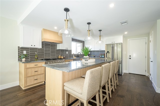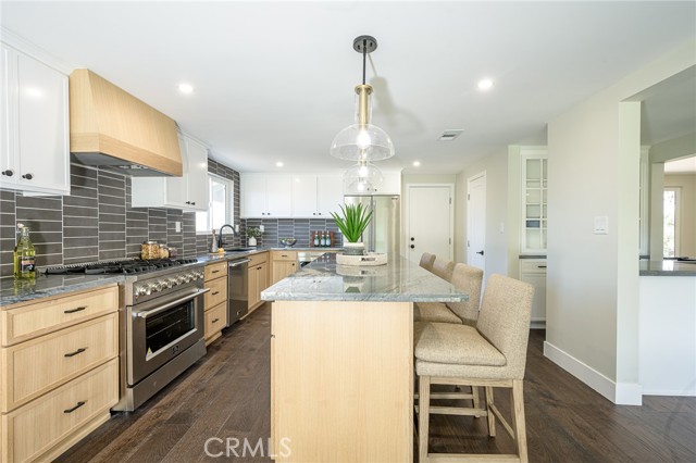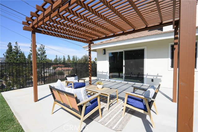 Beautifully UPDATED 5 bedroom, 3 bathroom home with stunning mountain and hill views in a desirable Hacienda Heights neighborhood. This home sits at the end of a cul-de-sac street with approximately 2441 sf of living space with an open concept living space. The kitchen has new custom two-tone cabinets, full tile backsplash, sleek new counter tops, new fixtures, stainless steel appliances, a large center island offering additional counter space and seating and a large walk-in pantry with an abundance of storage space. The bar space is great for hosting with a built-in wine fridge, wet bar area and built-in display cabinet. Downstairs you will find a living room with a decorative fireplace, dining room, kitchen, a den area that leads to one of the backyard patios, 3 bedrooms and 2 bathrooms. The primary bedroom is spacious with an ensuite bathroom, walk-in closet with custom built-ins, mountain views and sliding door that leads to another outdoor patio. Upstairs there are two additional bedrooms, both with mountain views and an additional bathroom. All the bathrooms have been upgraded with custom tile work, new fixtures and vanities. Other features include freshly painted interior and exterior, energy efficient windows and sliding doors, new interior doors, luxury flooring throughout the living areas and bedrooms, stylish plumbing and lighting fixtures, HVAC, and direct access to the two-car garage. The enclosed backyard is perfect for entertainment with stunning views, two patio areas and landscaped with new sod. This home is conveniently located and just a short distance to award winning schools, the world-renowned Hsi Lai Temple, shopping and restaurants, and local freeways.
