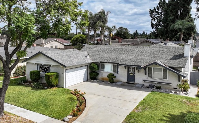 Lovingly maintained by the same family for over 30 years and ready for your personal finishing touches! Step into a home full of charm and potential, with 3 bedrooms, 2 baths and 1,868 Sqft, perfect for comfortable living. Enter into your cozy living room with brick fireplace. The kitchen features Corian counters, a convenient breakfast bar and is adjacent to the dining room. A highlight of this home is the huge 25' x 25' family room, featuring vaulted beamed ceilings, recessed lighting, ceiling fan, and a cozy river rock corner fireplace. The sliding door invites natural light and connects indoors with the large backyard, showcasing mature peach, lemon, and blood orange trees. Enjoy central air & heat, ensuring year-round comfort, and dual-paned Milgard windows for energy efficiency. The dedicated laundry room is complete with full-size washer/dryer hookups, utility sink, counter, and ample storage cabinets. The hall bath has been tastefully updated with tiled shower/bath enclosure, textured glass shower door, Corian-topped vanity, newer lighting & fixtures. The primary bath has been updated with frosted glass shower enclosure, newer vanity, newer lighting and fixtures. The attached 2 car garage and spacious side yards with storage sheds provide ample room for all your hobbies. Located close to Biola University and La Mirada High School, along with cultural gems like La Mirada Theatre for the Performing Arts, making it a perfect spot for both relaxation and active living. Local golf courses, parks, shopping, and restaurants add to the location's appeal. Don't miss out on this opportunity!