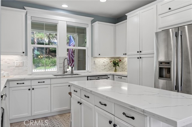 Offered in the sought-after Walden Park tract of Ladera Ranch, this highly upgraded Model 3X offers over 2,400 sq. ft. of living space on a prime corner lot. Nestled at the end of a peaceful cul-de-sac, this home features four bedrooms upstairs, a versatile casita/office with private entrance, two full baths and a guest bath. Multiple living areas include a formal dining room, separate living and family rooms, and a 2-car direct-access garage. The spacious kitchen featuring quartz countertops, a center island, wall oven, built-in microwave, and an open flow into the family room with a cozy fireplace. The luxurious primary suite boasts dual vanities, a generous walk-in closet, and a separate soaking tub and shower. Perfect for indoor/outdoor entertaining, the property offers a beautifully landscaped wrap-around yard with turf, a flagstone patio, and a built-in BBQ with stacked-stone detail. This immaculate home is loaded with recent upgrades, including: Fully paid-off 6.4 kW solar system (2023) Full-house repipe Fully paid-off water softener system Exterior recently repainted with custom shutters New gutter system Luxury Vinyl Plank (LVL) flooring throughout Kitchen remodel with quartz counters and modern finishes New double-pane windows Custom plantation shutters (upper floor) & roller blinds (lower floor) Encased windows, two fireplaces, and designer paint colors Enjoy the cost-saving benefits of owned solar panels and a paid-off water softener system, along with low-maintenance turf landscaping. All of this is just steps from tree-lined walking paths, Oso Grande Elementary, Ladera's private water park, skate park, pools, Boreal Park, and the many amenities of the award-winning Ladera Ranch master-planned community — featuring clubhouses, tennis courts, Olympic-sized pools, sports parks, youth programs, and endless biking/running trails.