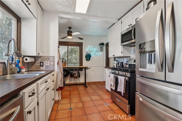 Charming Spanish-Style Home with Guest House Beautifully updated Spanish-style home featuring 2 bedrooms and 2 bathrooms, plus a fully renovated guest house in the back. This turnkey property combines classic character with modern comfort, offering copper plumbing, a tankless water heater, and central A/C and heating with a smart Nest thermostat. Enjoy new flooring, an updated kitchen, remodeled bathrooms, and fresh exterior paint. Dual-pane vinyl windows, updated light fixtures, and new laundry and hallway cabinetry add style and function throughout. The rebuilt deck overlooks lush landscaping with mature fruit trees and exterior lighting, creating a warm and inviting outdoor retreat. The guest house has been thoughtfully updated to match the main home, blending seamlessly in both design and comfort.