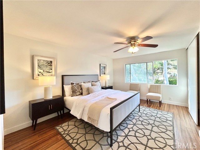 Welcome to one of Laguna Village's most desirable homes, featuring the rarely available and largest floor plan — The Monterrey. This residence offers the feel of a private home with no one above or below. Step through a serene courtyard into the entry and discover a spacious layout designed for comfort and versatility. The main level features a master suite with ensuite bathroom and guest bath while downstairs offers two additional private bedrooms with a shared bath — perfect for family, guests, or a home office. The expansive living room provides space for both lounging and dining, and flows seamlessly onto a covered balcony with sweeping views of lush trees and twinkling city lights — ideal for indoor-outdoor living. This property sits on one of the most desirable streets in the community and is ready for its next owner to personalize and make their own. Located in the resort-style Laguna Village community of North Laguna Hills, you'll enjoy access to an incredible range of amenities: three pools, two spas, tennis and basketball courts, sand volleyball, shuffleboard, a fitness center, BBQ and picnic areas, and a clubhouse. With its convenient location just minutes to the Irvine Spectrum, freeways, shopping, dining, and entertainment, this home is a rare opportunity to own one of the most coveted floor plans in a vibrant and beautifully maintained neighborhood.