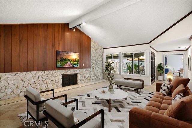 This spacious and versatile residence offering 6 bedrooms, 4 bathrooms, and 3718 sq ft of living space on an expansive 10988 sq ft lot. Perfectly designed for multi-generational living this home combines comfort, privacy, and entertainment in one of Brea's highly desired neighborhoods. With 4 downstairs bedrooms and 2 bedrooms upstairs, a portion of the property could be used for rental income, making it an ideal setup for generating extra revenue or accommodating extended family. Additionally, there's a separate office with a private entrance, perfect for remote work. From the moment you arrive, you'll be captivated by the beautifully landscaped front yard, with stunning brickwork and enclosed by a block wall for added privacy. The gated pool area is an ideal spot for enjoying sunny days. A two-car garage provides convenient side-door access to the covered front walkway, leading to the welcoming front double-door entry. Inside, the floor plan offers vaulted ceilings in the living room, highlighted by a cozy fireplace that sets the tone for relaxing evenings. Adjacent is a spacious formal dining area with French doors to the backyard, creating a seamless indoor-outdoor flow for entertaining. The kitchen offers a gas range, breakfast bar seating, and abundance of natural light, complemented by an additional dining area featuring a chandelier and French doors opening to the front courtyard with views of the pool. Downstairs also includes an oversized laundry room with built-in cabinetry, countertop space, and a sink for convenience. The main level hosts a full primary suite with an ensuite bathroom, as well as three additional bedrooms and a full bath. One of the standout features is the secondary unit within the home constructed in 1980, which offers excellent potential for rental income. Accessible through the main level or side gate with a separate entrance, this private space includes a living room with fireplace, kitchen, half bath downstairs, and direct access to the backyard ideal for guests, or generating rental revenue. Upstairs in this unit, you'll find a full bathroom and two bedrooms. The backyard is equally inviting, with a covered patio, grassy play area, and a large patio space perfect for gatherings. Fruit trees, including pomegranate, avocado, lemon, fig, guava, and mango, seasonal harvests. A storage shed adds even more functionality. With generous space, pool, income potential, and a prime location, this home has it all.