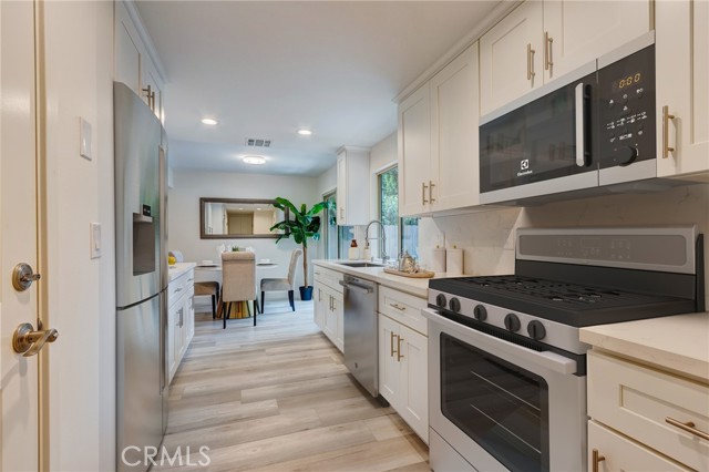 Escape to this cozy townhouse nestled in a gated, tranquil neighborhood of only 16 units which has been lovingly rebuilt from the ground up, offering peace of mind and modern comforts. Upon entering this beautiful home you'll find a cheerful, welcoming atmosphere with SPC Luxury Vinyl Plank flooring, a large living room, dining area and beautiful new kitchen with white shaker style cabinets and Carra white quartz countertops. Step out onto your private patio, a secluded oasis for enjoying the fresh air and creating a versatile space for both intimate meals and lively gatherings. Wake up each day with the warm, natural light that floods both bedrooms each morning. Never worry about parking or inclement weather with a secure 1-car garage with direct access to your home and a covered parking space with additional storage. Step out of your front door into a charming, walkable neighborhood with a variety of delicious dining options, serene parks and shopping, offering a vibrant yet peaceful lifestyle in the heart of Arcadia.