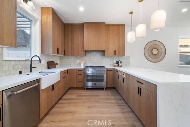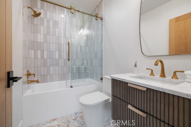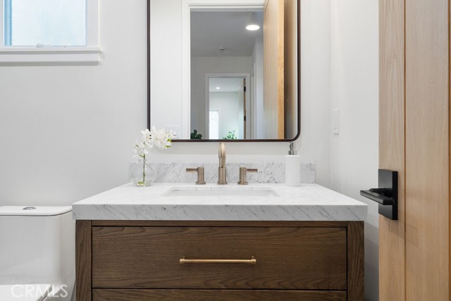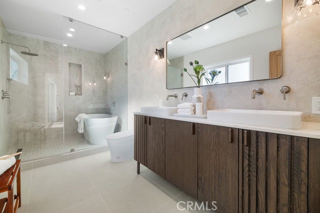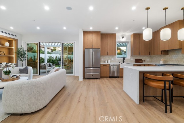 Tucked in the heart of coveted Toluca Lake, 4831 Sancola Ave offers a newly reimagined custom residence where modern luxury meets the timeless charm of Toluca Lake. As you enter, you're welcomed into a bright, open floor plan where engineered white oak floors guide you through the main living spaces. To the left, a versatile guest bedroom offers flexibility as a home office or private retreat. Even the powder room is a showpiece, featuring terrazzo flooring and a handcrafted Zellige tile backsplash — because in this home, every space makes a statement. The heart of the home is the bespoke chef's kitchen, designed with custom cabinetry, sleek stone counters, and top-of-the-line European appliances. It flows effortlessly into the dining and living areas, creating a seamless environment for entertaining and everyday living. Upstairs, you'll find three en-suite bedrooms, each with its own walk-in closet. The primary suite is a sanctuary with a Juliet balcony overlooking the backyard, a spa-inspired bathroom adorned with marble tile flooring, and an expansive walk-in closet. Outside, the entertainer's dream continues. Step into a resort-like backyard where a sparkling pool with cascading waterfall sets the stage for gatherings, relaxation, and warm California evenings. Beyond the property, you'll enjoy all that Toluca Lake is known for — boutique shopping, cafes, and fine dining within minutes. The home is served by highly regarded schools including Toluca Lake Elementary (8/10 GreatSchools) and Walter Reed Middle (8/10), with prestigious private options like Oakwood and Harvard-Westlake nearby. Easy access to major studios — Disney, Warner Bros., Universal — makes this an unmatched address for those seeking both luxury and convenience.