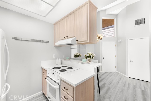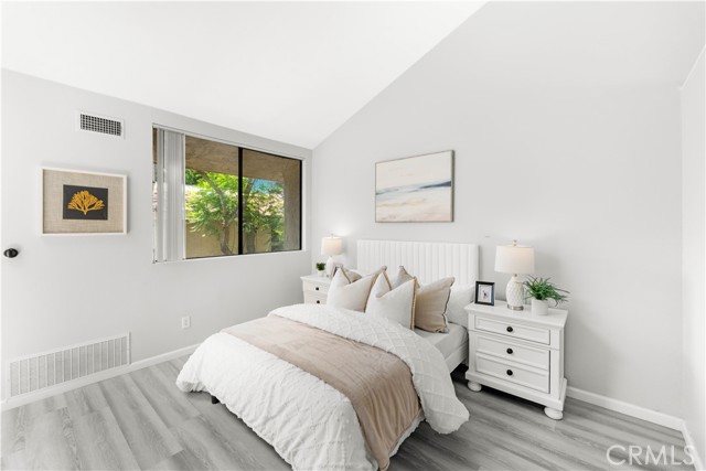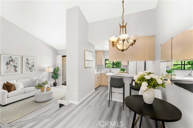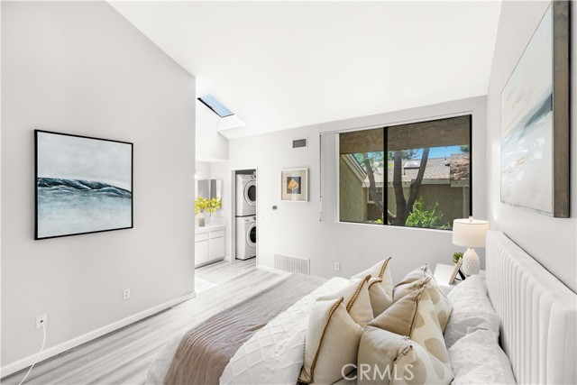 Welcome to this bright unit with soaring ceilings in the heart of The Lake community in Irvine. The spacious second-floor balcony overlooks a serene stream with playful ducks, while the kitchen and bathroom are filled with natural light from the windows and skylight, creating a warm and airy atmosphere. A generous walk-in closet provides ample storage, and the new AC and heater (installed in 2023) save you from major replacement costs for years to come. The in-unit laundry is a rare find among nearby apartment communities. This quite, well-kept community features a pool and tennis courts, with HOA covering water and trash, and no Mello-Roos offering exceptional value. Located within the boundaries of top-rated schools and close to kids' favorite Castle Park, the urban Hicks Canyon Trail, grocery stores, and restaurants, this move-in ready home is truly a little gem to call you own.