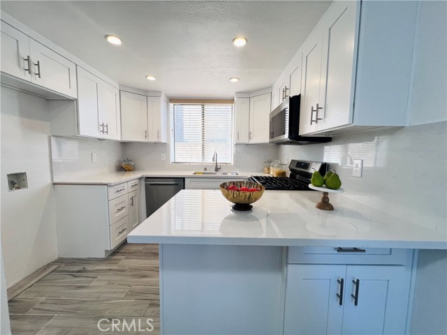 Welcome Home to 12501 Dessa Drive of Amber Court. A Cozy End-Unit Townhouse with it's own Private Entrance. Once enter, you'll be greeted by Brand New Interior Paint with Smooth Ceilings throughout, Beautiful Tile Flooring. Ground Level offers a Comfortable Living Room area with a Romantic Fireplace. Brand New Kitchen with Stainless Steel Samsung Appliances, Soft Closing Cabinetry, Luxurious Quartz Countertop with single piece Quartz Backsplash. Half Bathroom. Two-Car Garage with Direct Access. Upstairs include a Large Main Suite with an Oversized Walk-In Closet. Main Bathroom provides His and Her Sinks, Walk-In Shower. Secondary Bedroom located across the hallway with a Full Bathroom that includes Brand New Toilet, Shower Head, Faucet. Enjoy some Serenity in your own Private Low-Maintenance Backyard accessible via Sliding Door. Community offers a private Jacuzzi. Conveniently located nearby Garden Grove High School, Brand New Civic Center, Library, Costco, Amazing Restaurants, 22-Freeway.