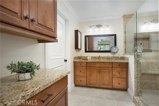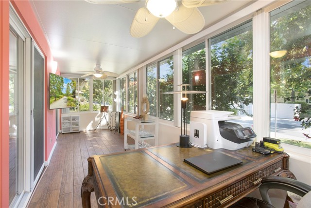NO STAIRS to this beautifully remodeled single-level home in the guard-gated Laguna Woods Village community. This END-UNIT lives more like a private cottage than a condo, offering the rare benefit of no one above or below you and a convenient carport plus guest parking just out front. Completely reimagined with walls moved and the floor plan expanded for improved functionality, storage, and flow. The primary suite was enlarged and reconfigured for better livability, and the guest bedroom was widened by about a foot with a larger closet — creating a comfortable space for guests or a home office. The open-concept kitchen features an impressive center island with pendant lighting that offers bar seating and ample storage, granite countertops, a large skylight for natural light, and upgraded stainless-steel appliances including a Bosch dishwasher, range with built-in air fryer, and full backsplash. Additional features include rich wood laminate flooring throughout, LED dimmable lighting, crown molding, high-end dual-pane windows, five ceiling fans, and a full-size in-home washer and dryer. The Smart Home system allows you to control lights, temperature, and the August keyless front door using Alexa or Google. The enclosed front patio adds approximately 200 square feet of additional living space — ideal for hobbies, office use, or relaxation. Freshly painted interior the home feels bright, modern, and warm while preserving its traditional charm. Residents enjoy access to Laguna Woods Village's resort-style amenities: five pools, three fitness centers, ten tennis courts, multiple pickleball courts, over 200 clubs (including one of the largest Bridge Clubs in California), arts studios, and performance spaces. The community is professionally managed with guard-gated security, and the monthly HOA fee includes exterior maintenance, yard and landscape maintenance, water, trash, and basic cable — a hallmark benefit of the Laguna Woods Stock Cooperative structure. This is an Active Adult 55+ lifestyle all of its own, even including bus transportation. With its private setting in Nob Hill, close to the Aliso Creek Trail, thoughtful redesign, and unbeatable amenities, this home offers an exceptional opportunity to enjoy one of Orange County's premier active-adult communities.