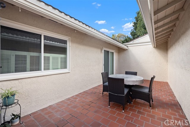 Welcome to this highly desirable 3-bd/2-ba Andaluz model home, located in a quiet, secluded cul-de-sac location in the highly desirable Laguna Woods Village for 55+ active seniors. This unit is located in a prime location near Gate 10 and Clubhouse 5. A stunning 3-bedroom, 2 bathroom layout boasting 1,381 SF of living space, this residence is sure to please! As one steps inside, one is greeted by neutral tile flooring, which extends to the living room and kitchen areas. The spacious living room features a charming wood-burning brick fireplace. The living room space flows into the adjacent, spacious formal dining room, including a wet bar for entertaining. From the living room, one can step out to a beautiful patio surrounded by open grass areas and landscaping, including beautiful mature trees, perfect for enjoying the outdoors. Kitchen appliances were upgraded 2 years ago, and the kitchen sink and countertop were upgraded barely 2 months ago. Luxury vinyl plank (LVP) flooring was installed in all 3 bedrooms 2 years ago. The master bedroom suite features a large dressing area, with mirrored wardrobe doors and a private sliding door to the quiet, serene backyard. Oversized double garage provides ample space for parking and extra storage. Residents of Laguna Woods Village enjoy a plethora of amenities, including golf, tennis, pickleball, seven clubhouses, 5 swimming pools, equestrian center and so much more! Please go to lagunawoodsvillage.com to find out more about Laguna Woods Village, and view the Buyer financial requirements outlined therein.