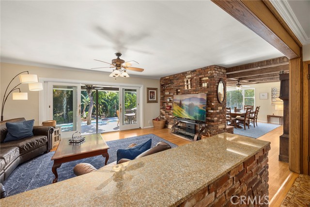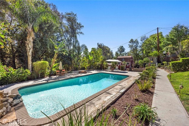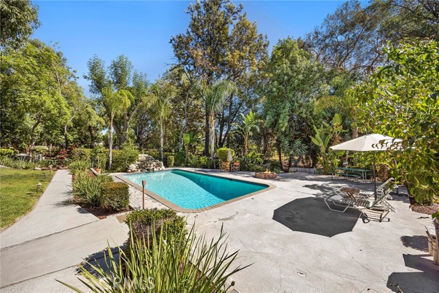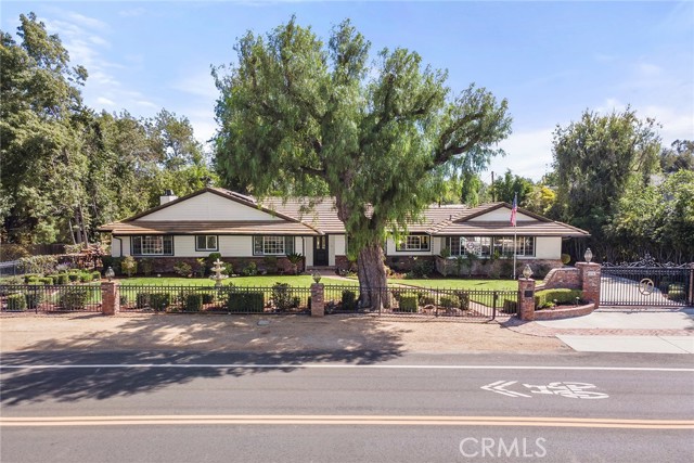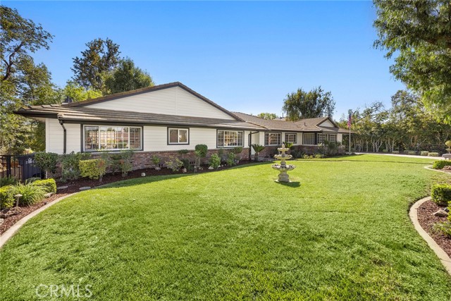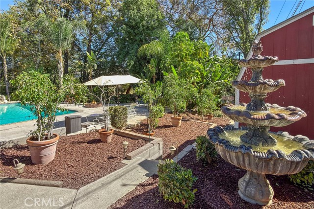 One-of-a-kind SINGLE STORY home, nestled on the prestigious Valencia Mesa Drive on appx. 21,500+ sf lot! Delightful curb appeal boasting private GATE and beautifully landscaped yard with romantic water fountains and lush foliage. This charming home showcases the timelessness of classic design elevated w/ modern convenience. Enter through a custom Dutch door leading into a spacious kitchen with high-end Wolf, Sub-Zero & Bosch appliances, stylish kitchen island and extra large counter space perfect for hosting. Spacious dining room with beautiful wood beamed ceiling, intimate fireplace, and large windows and slider providing light & bright ambiance. Great room with handsome brick wall and direct access to an Entertainer's backyard with expansive patio perfect for outdoor BBQ to spend balmy evenings dining al fresco, sparkling pool with waterfall and poolside lounging with cozy firepit, lush greenery and fairytale landscaping with walking path winding through multiple fruit bearing trees and tiered planters, personal greenhouse, chicken coop, a tortoise house with slide and a storage barn, a peaceful retreat that offers something for everyone while preserving a peace & privacy ambiance. All bedrooms provide ample space including a primary bedroom with custom built-in cabinets, dropdown Murphy Bed, walk-in closet and a stylish tub providing an ultimate relaxation with artistic detail. This special home is equipped with PAID Solar System, water filtration system, new water softener, fresh exterior Tex-Cote paint, and sweeping driveway with potential RV parking. A remarkable opportunity boasting every advantage of its prime location, proudly located in award winning Fullerton district, just moments away from the popular Laguna Lake and Fullerton Loop (hiking, biking, equestrian) trails, golf courses, St. Jude hospital and endless shopping/dinning options Fullerton has to offer. A true rare gem tucked away in a serene location perfect for entertaining while preserving an atmosphere of quiet intimacy. This one of a kind property on this well-desired street is a must see!