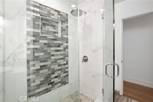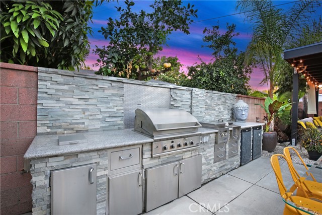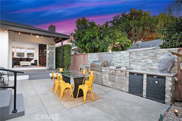 Indoor-outdoor living at its best! This one-of-a-kind 3 bedroom, 2 bath home in the heart of Downey is remodeled like none other! The centerpiece is a gourmet kitchen with high-end stainless steel appliances, book-matched thick granite counters, and custom KraftMaid cabinets. Both bathrooms have been updated, especially the primary bathroom with its oversized tile shower with a premium shower set, dual sinks/vanities and lighted mirror. The home has refinished hardwood original floors through out and refinished original interior doors. From the cozy living room with granite fireplace and built in bookshelves, you'll step through the foldable glass doors into your entertainer's backyard that boasts an all-time outdoor kitchen with BBQ, cooktop, warmer and mini-refrigerators and a covered patio with solid wood and anchors and a gas firepit to enjoy in the evenings, surrounded by decorative lights. Other amenities include a automated, coded steel front door, new oversized tankless water heater and gas meter, all new plumbing, central air and heat, new electrical panel and wiring, new fascia boards and exterior paint, Ring doorbell and perimeter cameras, and an insulated steel garage door with automatic opener. Look no further -- your dream home awaits you.