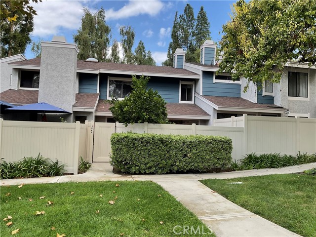 This two-story condo offers 2 bedrooms, 1.5 bathrooms, and a 2-car attached garage with direct access. The spacious living room features a cozy fireplace, and the kitchen overlooks the front patio, perfect for relaxing. Large primary bedroom with high ceilings and a bathroom with double sinks. Both bedrooms come with ceiling fans for added comfort .Laminate wood flooring runs through the living room, kitchen, dining area, and stairs. Located close to shopping, restaurants, schools, and with easy freeway access, this home is well-kept, and move-in ready!