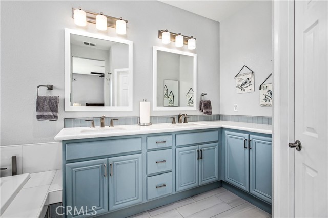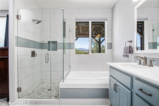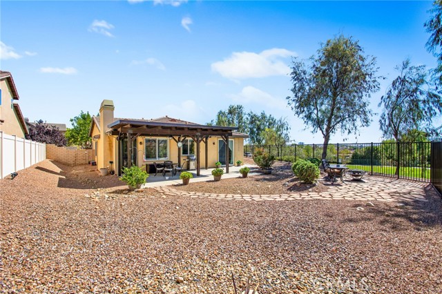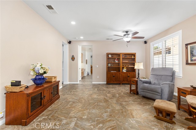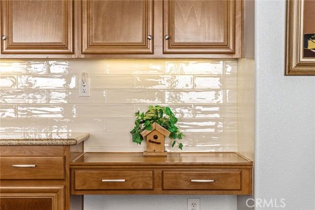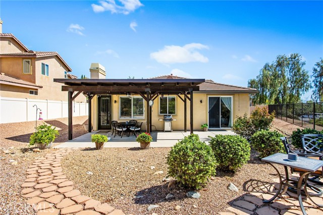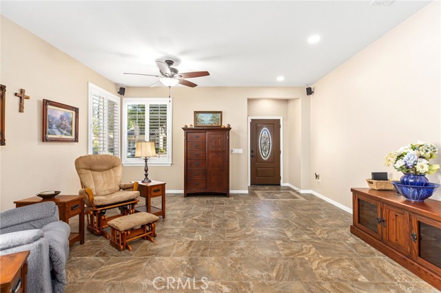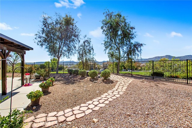 Views, privacy, perfection! This single-story Van Daele home checks every box. Tucked away on a quiet cul-de-sac with only one neighbor, this rare property sits on a premium, flat lot designed for both privacy and views. Imagine morning coffee and sunset views! Inside, style meets comfort. The completely remodeled primary bathroom is a true showpiece with a glass-tiled shower, soaking tub with armrests, dual sinks, and custom mirrors. Italian porcelain tile runs through the high-traffic areas, and with 9-foot ceilings, recessed lighting, and a spacious open layout, the home feels airy, bright, and endlessly inviting. The great room features a stacked travertine fireplace and opens seamlessly to the chef's kitchen, equipped with granite counters, subway tile backsplash, rich chestnut cabinetry, and premium stainless appliances, including a Wolf gas range, Bosch silent dishwasher, Samsung microwave, and a reverse osmosis water system for purified drinking water. Outdoors, the landscaping is beautifully drought-tolerant in both front and back, accented by vinyl and wrought-iron fencing that frame serene hillside and park views. Relax under the redwood and pinewood pergola, or enjoy direct access to the walking trail, basketball courts, and playground just beyond your backyard. Add in large side yards, a Quiet Cool system, ceiling fans throughout, and this property offers the perfect blend of efficiency, style, and livability. This isn't just a house, it's the one. Schedule your tour and experience the lifestyle you've been waiting for.
