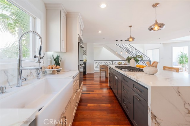 Rare oversized, turnkey townhome west of PCH in Hermosa Beach. Bathed in natural light, this exceptional home enjoys ocean breezes and views from the living room, three patios, and a private rooftop deck. A ground-level entry leads to three bedrooms, including a grand primary suite with its own private balcony and a fully remodeled 2023 master bathroom featuring a new vanity, flooring, tub, and steam shower for ultimate relaxation. The main floor upstairs hosts a wide-open living and dining area seamlessly connected to a fully remodeled 2023 kitchen and a spacious patio, perfect for BBQs, entertaining, and sunset gatherings. On the third level, a spacious loft with its own full bath and private patio provides flexible space for a gym, home office, bonus room, or fourth bedroom, and leads to the rooftop deck with ocean and neighborhood views. The interior showcases beautiful wood floors, fresh paint, architectural details, and numerous thoughtful upgrades — including new interior doors and hardware, remote-control blinds on high windows, Nest heating and cooling, built-in garage cabinets, keyless entry, and upgraded baths throughout. Ideally located within walking distance to the beach, greenbelt, shops, parks, and restaurants, with easy freeway access to LAX, and situated in Hermosa Beach's excellent school district. This is the lifestyle you've been waiting for — Welcome Home!