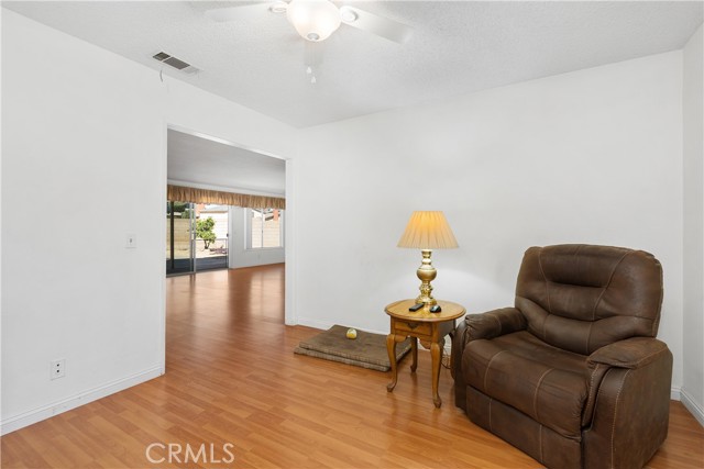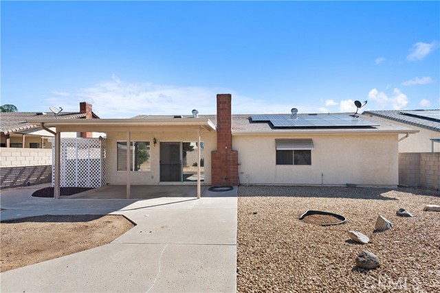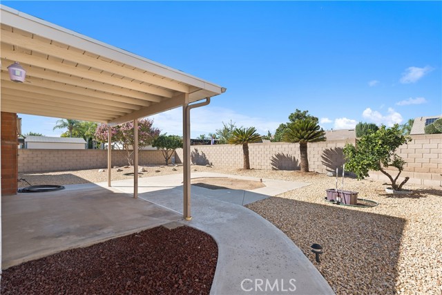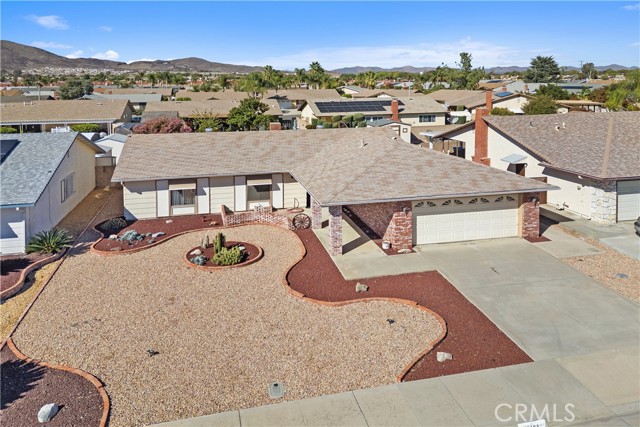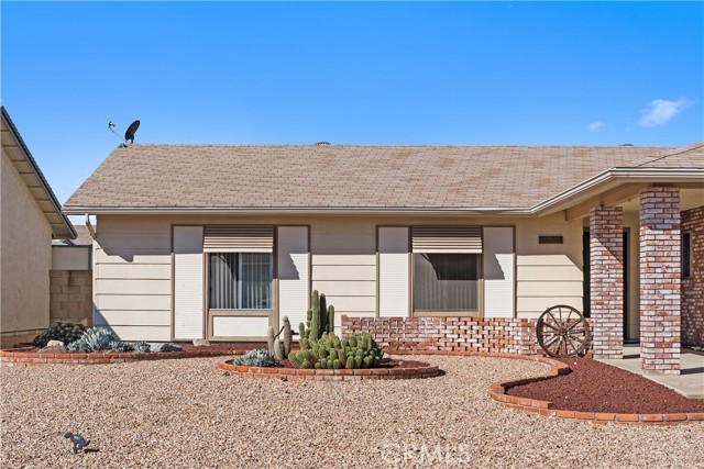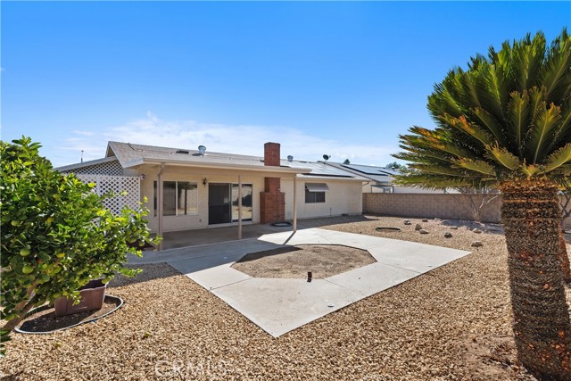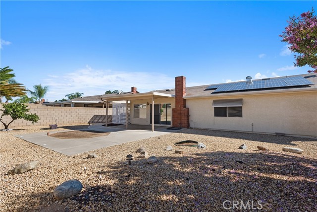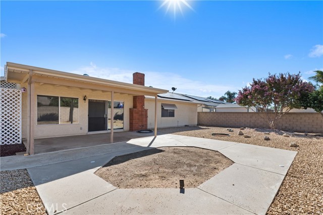 Welcome to this well-maintained 2-bedroom, 2-Bath Home in a desirable 55+ senior community — with no HOA fees. The front and back yards showcase water-wise landscaping, while leased solar panels help reduce energy costs. Inside, the bright open floor plan features a cozy fireplace in the living room, flowing into the dining area with a sliding glass door opening to the covered patio and large backyard with block walls for privacy. Laminate flooring adds warmth and a separate den that could also be used as an office. The open kitchen offers Corian countertops, tile flooring, recessed lighting, and abundant storage in beautiful cupboards. The primary bedroom features a vanity and walk-in closet, while the bath has a granite countertop and therapeutic walk-in tub with hydro massage jets — perfect for relaxation. The guest bedroom has large closets and access to the guest bathroom with a granite countertop. A separate laundry room sits conveniently off the kitchen with access to the back porch and garage. Located in a quiet, established neighborhood close to shopping, dining, local wineries, and medical facilities, this home combines comfort, convenience, and low-maintenance living – all without the added cost of HOA dues. Residents are able to attend the Sun City Civic Association clubs as guests, offering the best of both worlds!