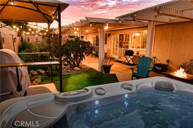 Welcome to this beautifully updated 4-bedroom, 2-bathroom home nestled in the highly desirable Meredith Parkwood neighborhood of Santa Ana, within the sought after Tustin Unified School District. Offering 1,606 sq ft of thoughtfully designed, single-story living, this home combines modern upgrades with classic charm. Inside, enjoy tile flooring, crown molding, custom paint, and newer double-paned windows throughout. The spacious living room features a striking granite fireplace with a custom mantle, creating a warm and stylish focal point. The heart of the home is the gourmet entertainer's kitchen and adjoining dining area boasting granite countertops, custom cabinetry, a large center island, 6-burner gas stove, stylish backsplash, stainless steel appliances, a built-in hutch with wine cooler and a separate pantry. Primary bedroom has its own ensuite bath with view and access of beautiful backyard. The front yard features drought-tolerant landscaping for easy maintenance and curb appeal, while the backyard is a private oasis with a large covered patio, peaceful koi pond, and an inviting above-ground spa — ideal for relaxing or entertaining. Additional highlights include: • Fully owned solar system for energy efficiency • Dedicated indoor laundry room • Attached 2-car garage. Located near parks, shopping, dining, and major commuter routes, this move-in ready home offers comfort, efficiency, and lifestyle in one of Santa Ana's most desirable neighborhoods.