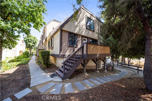 Welcome to Shadow Mountain Trails, a highly desirable gated community in Lakeview Terrace! This tri-level townhome is priced to sell and offers space, style, and convenience in one of the most scenic neighborhoods of the Valley. Step inside to a bright living room with vaulted ceilings, a cozy fireplace, and open dining area that flows seamlessly into the remodeled kitchen — featuring granite countertops and stainless steel appliances. The master suite downstairs provides privacy with its own full bath, while two spacious bedrooms upstairs offer comfort and versatility. Big closets, wood laminate and carpeted floors, plus in-unit laundry add everyday ease. Enjoy the front porch, direct 2-car garage access, central A/C & heat, and generous storage throughout. Outside, the community features a sparkling pool & spa, lush landscaped grounds, gated entry, and plenty of guest parking. All this just minutes from Hansen Dam Recreation Center, Aquatic Center, Angeles National Golf Club, horse trails, and the 210 freeway — perfect for outdoor enthusiasts and commuters alike. This end-unit home combines comfort, convenience, and value. Don't wait — schedule your private showing today before it's gone!