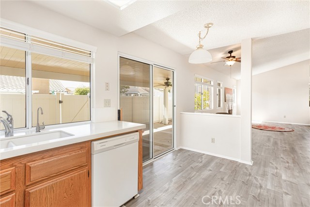 When you drive through the gate at Sun Lakes, and find the beautiful and friendly community. You are home! The community offers 2 golf courses, 2 restaurants, 3 clubhouses with meeting rooms, gyms, Swimming pools, and 3 libraries. There are plenty of clubs and activities to join for crafts, dancing, games, travel, and entertainment. Boccie ball, Paddle ball, Tennis, Billiards, and of course take advantage of the two lovely golf courses. This home won't last long, so come and see the desirable home with the life style you have dreamed of! Within the community of Sun Lakes Country Club, this beautiful Idyllwild model condominium enjoys a prime location close to the swimming pool and overlooking the greenbelt out the back fence. Inside, 2 bedrooms and 2 bathrooms within 985 sq ft of living space. The laminate flooring runs throughout the home, providing both durability and modern style. The kitchen is bright and airy, and featured stunning quartz countertops and plenty of cabinetry to store all your kitchen gadgets. A fireplace warms the living room and the dining area. The living area is open to the kitchen and keeps the conversation going with the chef in the kitchen. The guest bathroom has a shower tub combo, while the master bathroom offers a walk-in shower with a good size vanity. The master bedroom features a walk in closet and easy access to the garage. Additional features include a washer and dryer in the garage as well as room for two cars. The patio is covered for year round enjoyment, and there is one orange tree with fruit to start your mornings. With its excellent curb appeal and a central location within the community this nice condo offers the perfect blend of comfort, style, and resort style living at a killer of a price! Schedule your viewing before it's gone!