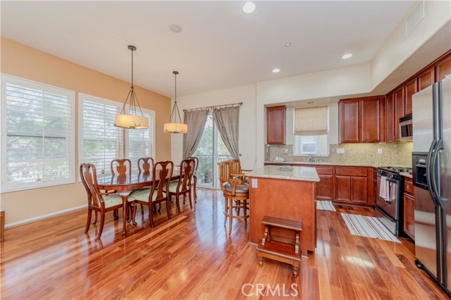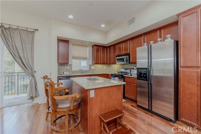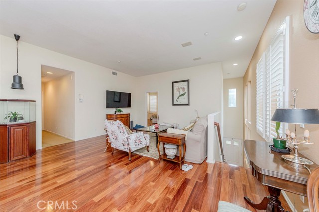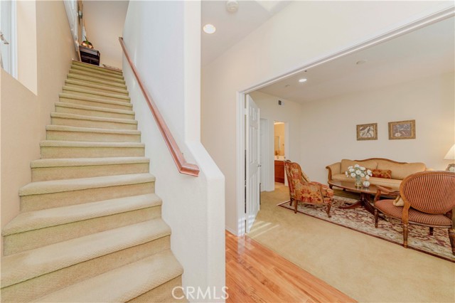 Beautifully Upgraded End-Unit Townhome with Treeline View in Amerige Heights! This highly upgraded 2-story townhome offers 3 spacious bedrooms and 3 full bathrooms, including a private en-suite bedroom with walk-in closet conveniently located on the first floor. Enjoy the bright and airy open layout with elegant wood flooring throughout, a gourmet kitchen featuring granite countertops, a center island, and a private balcony perfect for relaxing. The living room and primary suite are enhanced with a built-in sound system and wood shutters for added style and comfort. Additional highlights include an upstairs laundry room, direct access to a 2-car garage, and stunning treeline views. Located just a short walk to award-winning schools — Robert C. Fisler (K – 8) and Sunny Hills High School — and close to shopping, dining, and the gym at Amerige Heights Town Center.