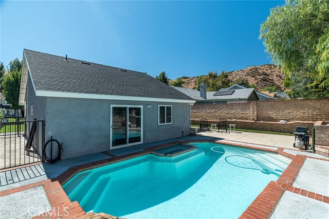Welcome to this beautifully maintained single-story home in the heart of Castaic! Featuring three bedrooms, two full baths, and 1,319 square feet of living space, this home perfectly blends comfort, style, and convenience. Inside, you'll find an open kitchen, a living room with vaulted ceilings and abundant natural light, a separate dining area, and a cozy gas fireplace. Upgraded flooring, contemporary kitchen with upgraded appliances, and fresh interior and exterior paint create a move-in-ready feel. The spacious primary suite opens to the backyard for seamless indoor-outdoor experience. One guest bedroom features charming paneling and crown molding. Additional highlights include dual pane windows, a Nest thermostat, central HVAC, and recent roof and siding updates. The private backyard oasis boasts a sparkling pool, functional water fountain, and updated systems including a newer pump, filter, and safety gate. Enjoy mountain views, a new side gate, and a patio set perfect for entertaining. Conveniently near the I-5, this home offers easy access to Santa Clarita, Valencia Town Center, Six Flags Magic Mountain, and the San Fernando Valley. Outdoor enthusiasts will love near you Castaic Lake, parks, and hiking trails. Located in the top-rated Castaic Union and William S. Hart Union School Districts, this home is ready for your private tour!