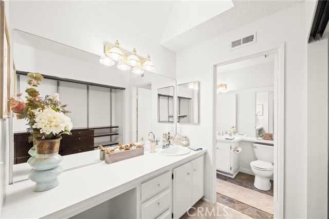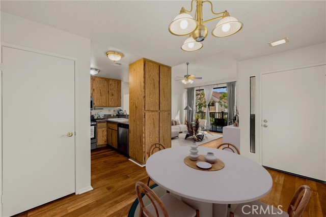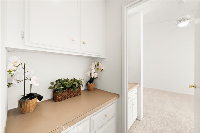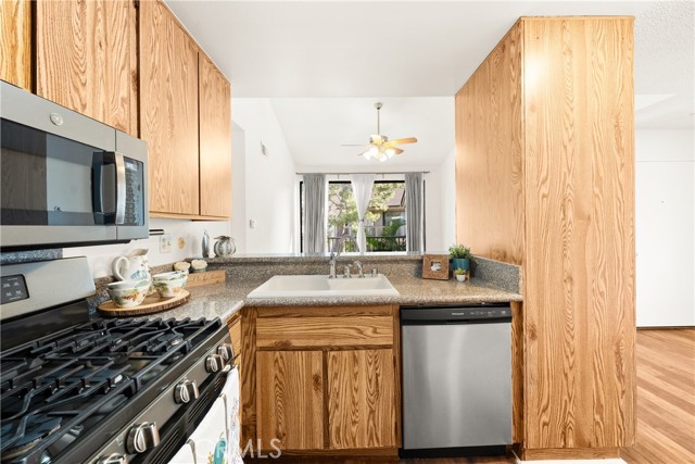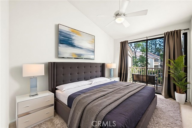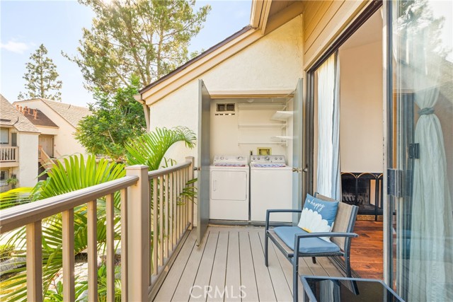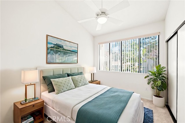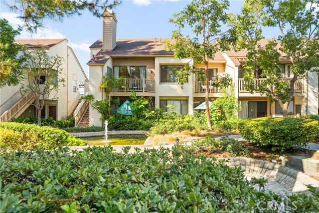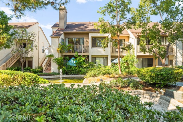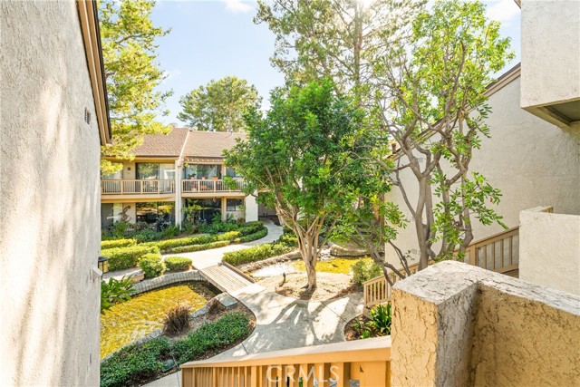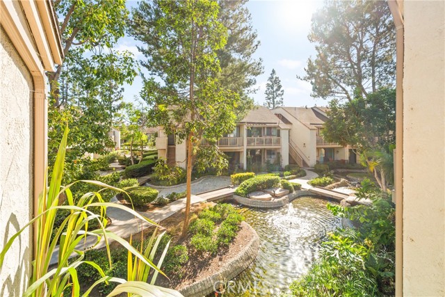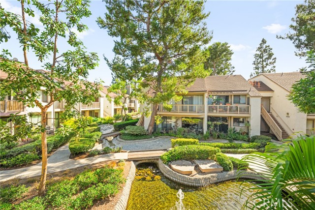 COME ON IN to this stunning, oasis in Garden Grove! This upper-level, corner unit features two bedrooms and two balconies with views of flowing brooks, meandering pathways, and beautifully maintained trees all around! As you step inside, you're welcomed by a roomy living area boasting high ceilings, open floorplan, abundant natural light, a comfortable gas fireplace and a stunning view of the Lakeside Community! As you move in the living room, open the patio doors to listen to the gentle sounds of nearby creeks and streams. Conveniently located on the balcony is a closet that houses the washer and dryer. Just a few steps away, the kitchen awaits, complete with generous dining area with plenty of cabinet space, granite countertops, a stove, a microwave and a breakfast nook. The guest bedroom has plenty of closet space and a hallway bathroom nearby. The spacious primary bedroom featuring a large, walk-in closet. The primary suite also boasts another custom-built closet along with a private vanity and sink, and its adjoining door to the hallway bathroom gives you the convenience of seemingly having two bathrooms. Other fantastic features of this home include central air conditioning, ceiling fans, new carpeting, and a fresh coat of paint throughout. It boasts a newer water heater and a recently acquired dishwasher as well. The Lakeside community is meticulously maintained and gated, featuring two swimming pools, spas and recreational trails behind the community. Nestled amongst lush greenbelts, the area is surrounded by trees, lakes, streams, and convenient sidewalks equipped with doggy waste bins. Additional highlights of this home are the two carport parking spaces and plenty of guest parking available. Enjoy a prime location near downtown Garden Grove, access to the 22 freeway, close proximity to Home Depot, Costco, Garden Grove Central Library, and the various dining spaces, eateries and shops on Main Street! This a must see! Some rooms are virtually staged in the photographs.