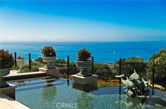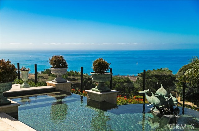 Perched at the top of guard-gated Pelican Crest on a premier wraparound lot, this custom coastal estate delivers unobstructed panoramas of the Pacific, Catalina, Newport Harbor, and white-water — sunrises and sunsets alike. Designed for modern indoor/outdoor living, the ~5,268 SF residence offers 4 ensuite bedrooms + office/optional 5th bedroom, soaring volumes, marble finishes, custom lighting, and floorplan that flows from the family room with wet bar to the chef's kitchen and view terraces. The gourmet kitchen is anchored by Calacatta Gold marble, walnut cabinetry, a La Cornue French range with custom hood, twin glass-door Sub-Zero refrigerators, a walk-in wet bar, and a built-in Miele coffee system — crafted for effortless entertaining. Bi-fold doors dissolve the boundary to the outdoors where a private pool & spa frame the coastline. A serene ocean-oriented primary retreat features a sitting area with custom fireplace mantle, dual boutique-scale closets, and a hotel-inspired bath highlighted by a stand-alone tub. Two main-level bedroom suites enhance livability for multi-generational needs or VIP guests. Outdoors, layered terraces, fire features, and lush landscaping create a private resort setting; inside, multiple fireplaces, an open floor plan, dedicated laundry, and 3-car parking complete the offering. The community has security & guard services and is just moments from Pelican Hill Resort & Golf, Crystal Cove beaches, and Fashion Island dining/shopping.