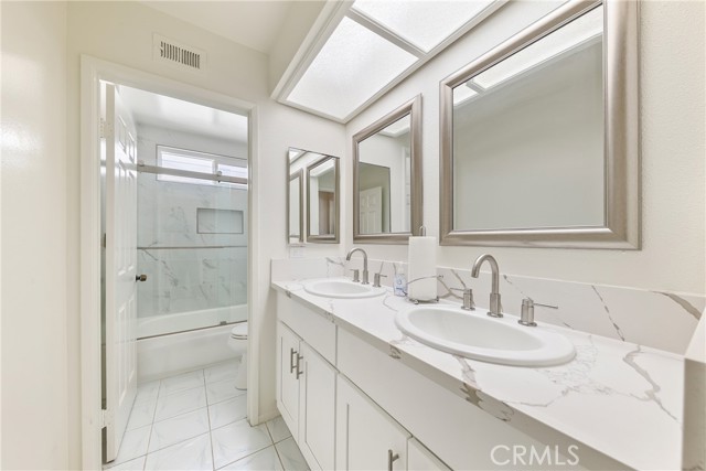 Come and see this stunning five-bedroom, three-bathroom home offering over 2,700 square feet of beautifully updated living space. Perfectly designed for comfort and functionality, this home is truly move-in ready and ideal for today's modern lifestyle. Step inside to a bright and spacious layout featuring a renovated kitchen complete with newer stainless steel Samsung appliances, new cabinetry, and elegant Quartz countertops. Two of the three bathrooms have been completely remodeled, showcasing modern fixtures, stylish vanities, and matching Quartz finishes for a cohesive designer look. The thoughtfully designed floor plan includes one bedroom and a full bath downstairs — perfect for guests, a home office, or private workspace. The spacious living room opens to a formal dining area, while the cozy family room — complete with a beautiful fireplace — flows seamlessly into the sunny kitchen with a built in Island. Upstairs, the oversized primary suite features a walk-in closet and a luxurious private bath with a separate tub and shower. As if that weren't enough, energy efficiency and comfort abound with newer dual-paned windows with custom shutters, a 2-year-old HVAC system, and a 3-year-old water heater. The home also features an upgraded electrical panel, a newer roof for added peace of mind. Thousands have been spent to prepare this home for its new owners. With its blend of modern upgrades, generous space, and a warm, inviting feel, this property truly stands out as a must-see.