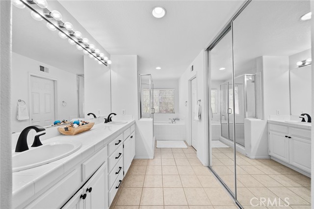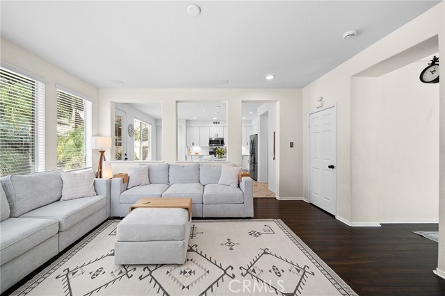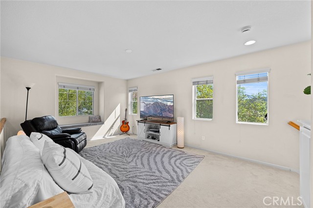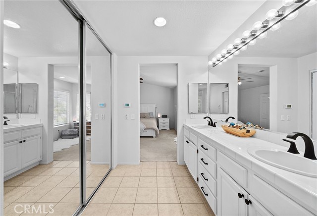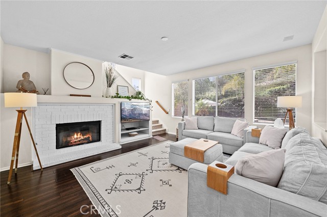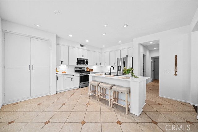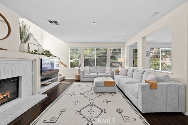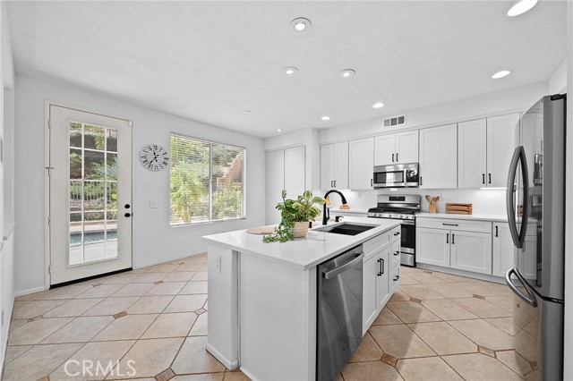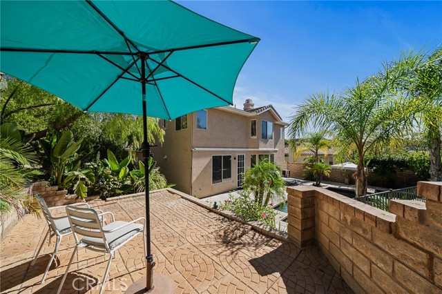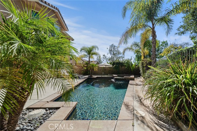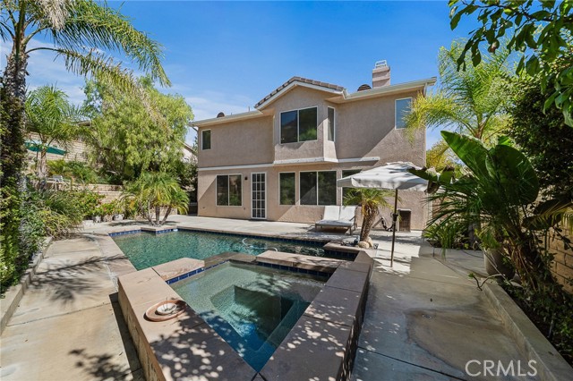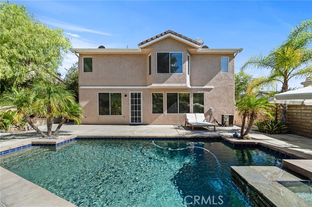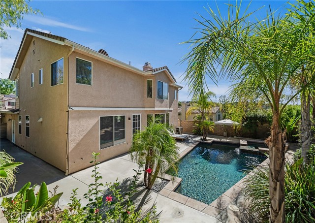 Welcome to this lovingly maintained 4-bedroom, 3-bathroom home in Pacific Hills, one of Santa Clarita's most desirable communities. Featuring nearly 2,400 square feet of comfortable living space, this home blends open-concept design with distinct, well-defined rooms — ideal for both entertaining and everyday living. At the heart of the home is a beautiful, crisp white kitchen showcasing newer cabinets, new sleek and durable quartz countertops, a spacious island, and newer stainless steel appliances including a stove, microwave, and dishwasher. The kitchen opens to a bright and inviting living room, creating a seamless flow while maintaining each space's individual charm. For convenience, the home includes a full bedroom and bathroom downstairs, perfect for guests or multi-generational living. Upstairs, the primary suite impresses with soaring ceilings, a generous walk-in closet, and a spacious en-suite bathroom designed for relaxation. An additional loft offers flexible space for a home office, playroom, or media area. Step outside to your private backyard oasis, complete with a sparkling pool, new pool pump, and elevated deck — perfect for outdoor dining or soaking in the sunshine. Beautiful landscaping features mature plum and olive trees, adding character and tranquility to the space. Thoughtful upgrades include a whole-house PEX repipe, an updated upstairs guest bath, and other modern touches throughout. Enjoy peace of mind with low HOA dues, no Mello-Roos, and access to an exclusive community park and top-rated schools. This move-in-ready home offers the perfect combination of comfort, style, and location — a true gem that's not to be missed!