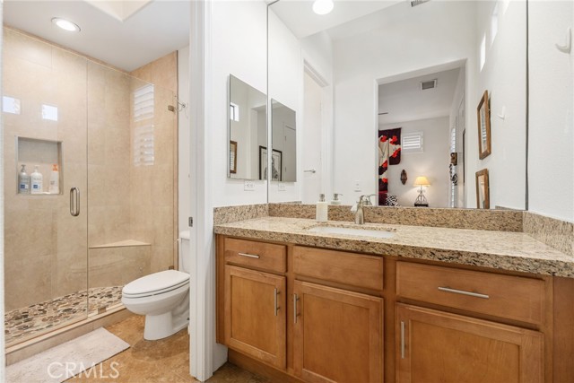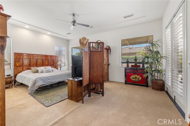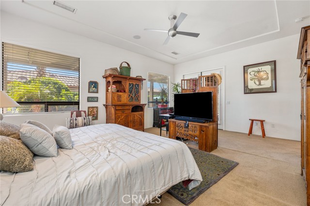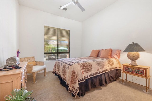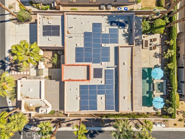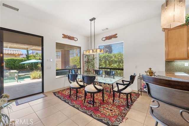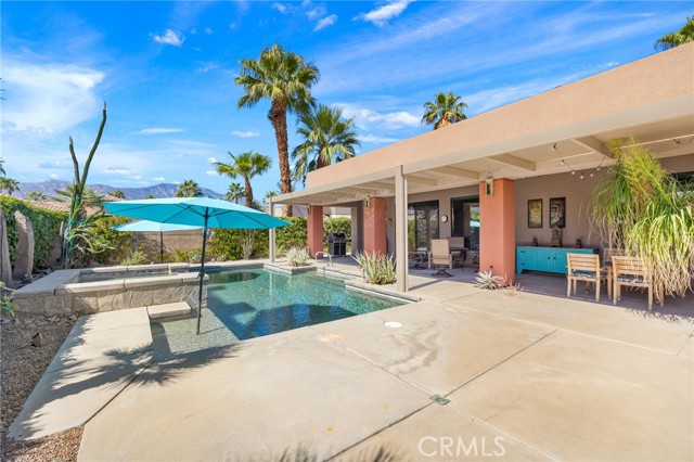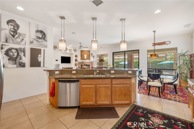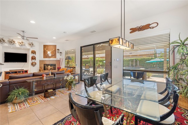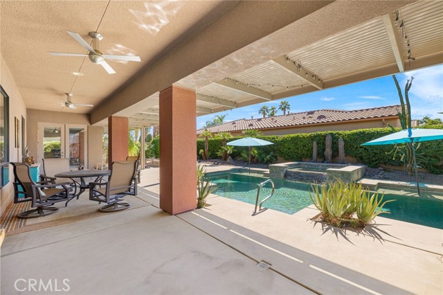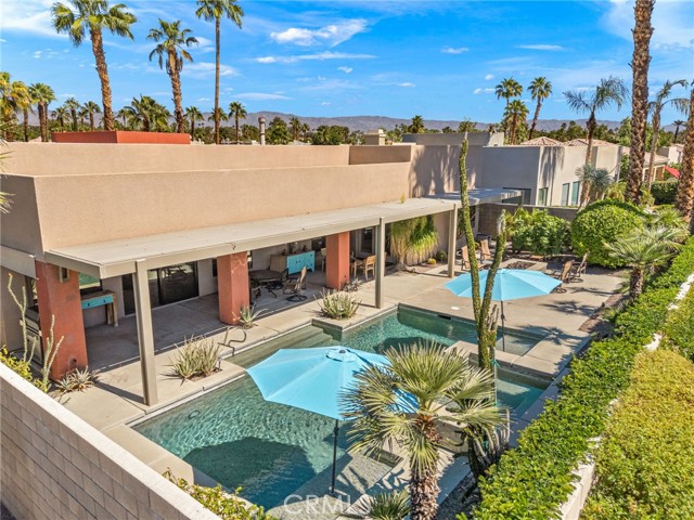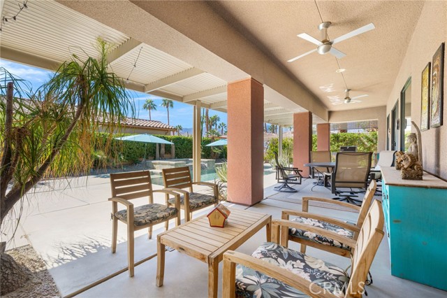 This highly upgraded contemporary home in the desirable Montage community offers resort-style living on an oversized interior corner lot providing a greater sense of openness. Well maintained, with or without certain furnishings, this home features 3 bedrooms, 3.5 bathrooms, a flexible living room or office, and a detached, private guest casita. The open-concept layout flows effortlessly from the chef's kitchen — with slab granite countertops, dual ovens, and a large breakfast-bar into the spacious great room and out to a covered patio overlooking the saltwater pool, spa, fire pit, and another outdoor casita fireplace. The property showcases a beautifully designed and professionally landscaped desert oasis, with mature fig and lemon trees, and a variety of stunning palms and cacti gracing both the front and rear yards, creating a lush, private retreat. Additional highlights include a total of three fireplaces, speaker system throughout, and low-maintenance desert landscaping. Energy efficiency abounds with a Lennix top-of-the-line duel HVAC systems and a Vivint Solar lease for low monthly utility costs. Montage residents enjoy a complimentary Social and Fitness Membership to Mission Hills Country Club included in the low $340 monthly HOA fee. Ideally located just minutes from golf, dining, and Palm Springs nightlife, this home blends luxury, comfort, and efficiency in one perfect desert escape.