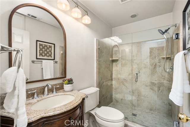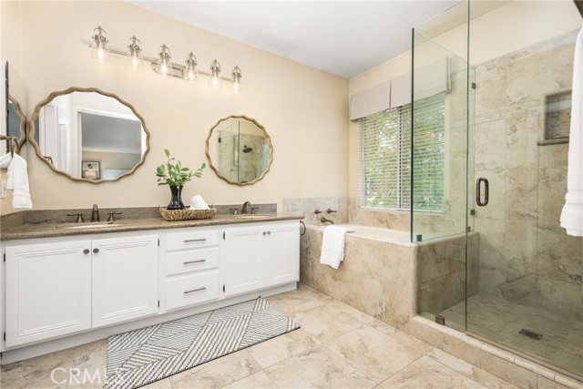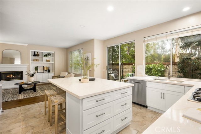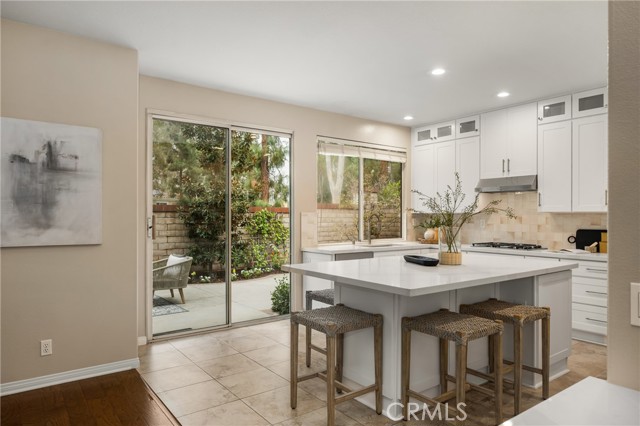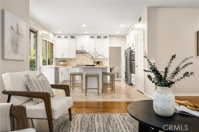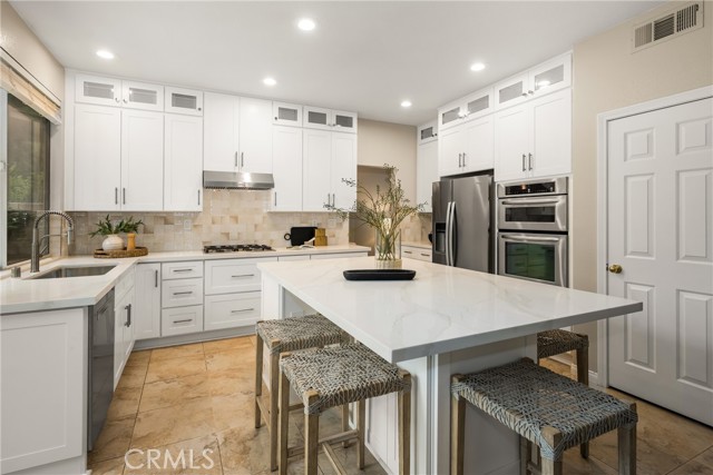 Live Work & Play in one of the best communities in the OC! Tustin Ranch is conveniently located in central Orange County w/easy access to golf, parks, Angels baseball & Ducks hockey stadiums, Disney, South Coast theatre, Newport Beach Fashion Island shopping, many beaches, John Wayne Airport & an easy commute to many local cities. 10940 Tantlinger is located in the desirable gated community of El Dorado just steps to top ranking schools, many parks, Tustin/Irvine Marketplace shopping, Tustin Ranch Golf Course & nestled amongst the hills of Peters Canyon offering year round beauty & outdoor fun! This expansive home offers 4 bedrooms plus a huge bonus room that could be a 5th bedroom. One of the bedrooms is located on the main floor w/a large closet & would also be a great office space. Entering through the double doors the volume ceilings & natural light fill the formal living room. The kitchen was just updated w/NEW white Shaker cabinetry, satin hardware, elegant Quartz counters, single stack square backsplash & large custom island w/seating. The elongated cabinetry w/upper glass cabinets, island & pantry offer an abundance of storage. The kitchen & family room seamlessly flow together & are a great gathering place for friends & family. The primary bedroom suite offers privacy with its thoughtful location on the back of the home & offers a large retreat w/fireplace that makes a wonderful additional flex space for work out equipment or office space. The primary bath is complete with soaking tub, walk in shower, dual vanity sinks, new custom mirrors & lighting as well as a huge closet w/custom organizer. On the other side of the home there are two additional bedrooms & a huge bonus room w/custom built in cabinetry. New light fixtures & mirrors were recently installed as well us luxury vinyl plank wood look flooring in the hall bath. Additional features include hardwood plank & tile flooring as well as newer upgraded carpeting upstairs. Double sliding glass doors lead to a private sprawling patio w/custom raised masonry planter beds & lovely views of the surrounding hills & trees. Tucked within the private gates of El Dorado are an association pool, spa, playground, BBQ area & a huge grassy green belt for kids & dogs to frolic. El Dorado familes come together for annual neighborhood events such as a 4th OF JULY parade, ice cream truck, summer movie nights, cornhole tournament & winterfest.