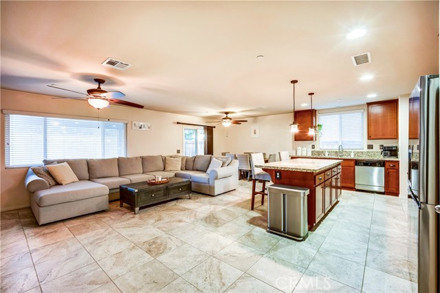 Stunning Single-Story Home in Highly Desirable McSweeney Farms! Beautifully upgraded 4-bedroom, 2-bath single-level home featuring an open floor plan with spacious living and dining areas, perfect for entertaining. The gourmet kitchen boasts granite counters, large island with pendant lighting, stainless steel appliances, and tile flooring throughout. The primary suite includes a large walk-in closet and elegant private bath. Additional highlights: inside laundry with sink hookup, upgraded interior doors, newer window treatments, custom security door, and state-of-the-art 7-camera security system. Enjoy your private backyard retreat with professional landscaping, drainage, covered Alumawood patio with ceiling fan, fire pit, and peaceful views. Community amenities include Olympic-size pool, clubhouse, parks, walking trails, playgrounds, and sports fields. Conveniently located near Temecula Wine Country and easy access to Domenigoni Pkwy. This home is move-in ready and a must see!