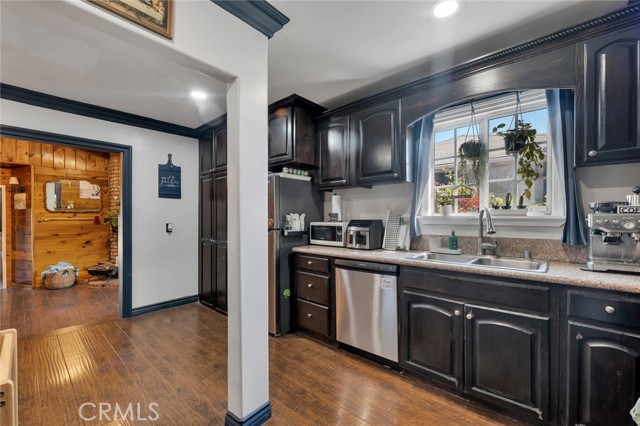 Discover this Sun Valley gem offering space, style, and versatility with 4 bedrooms and 3 baths. The open-concept living, dining, and kitchen areas feature plank flooring, granite counters, and stainless steel appliances, creating a welcoming flow ideal for entertaining. The expansive primary suite includes a walk-in closet and a remodeled spa-style shower built for two. Step down into a stunning family room with solid wood paneling, high ceilings, and a cozy fireplace — perfect for relaxing evenings. Another step leads to a den with a laundry area, an additional bathroom, and the fourth bedroom, ideal for guests or extended family. The huge backyard offers endless possibilities — room for a pool, entertaining, or even an ADU. Energy-efficient solar panels help keep utility costs low, while a large storage room, extra shed, and ample gated parking for multiple vehicles complete this exceptional home that blends charm, comfort, and practicality.