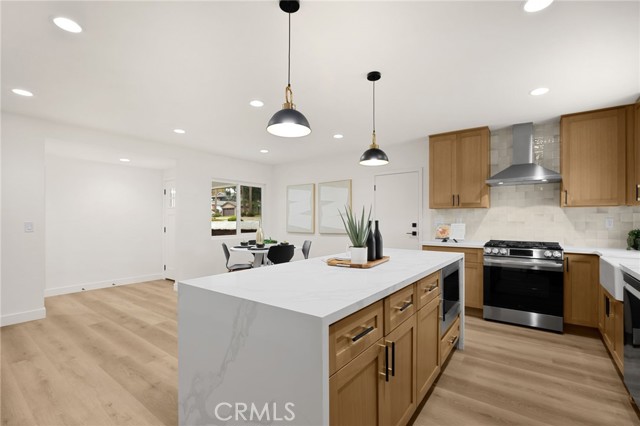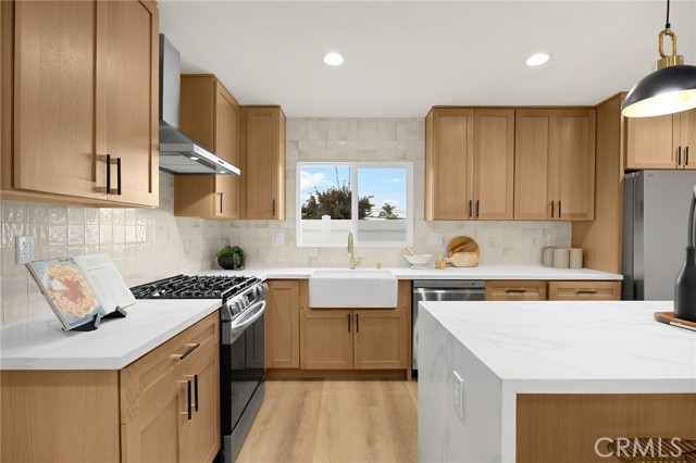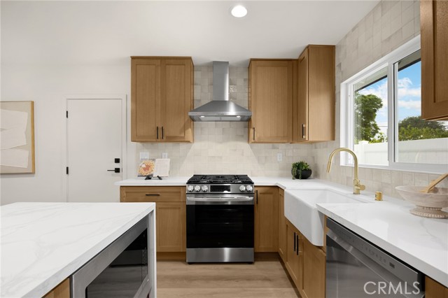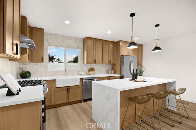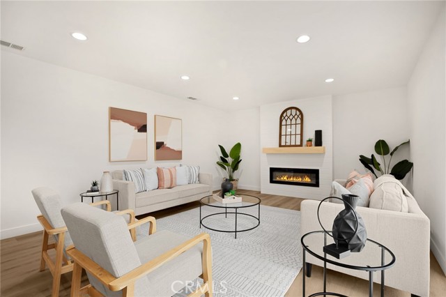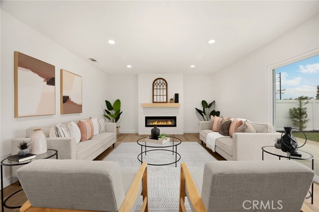 Stunningly Renovated 3-Bedroom Home in Highly Desirable La Habra Neighborhood. A perfect blend of modern luxury and comfort, welcome to this beautifully renovated 3-bedroom, 2-bathroom home, ideally situated on a quiet, well-kept street. From the moment you arrive, you'll be captivated by the thoughtful updates, modern finishes, and inviting curb appeal. Step inside to discover a bright and open floor plan featuring a chef-inspired kitchen bathed in natural light. The space boasts sleek oak-tone shaker cabinets, elegant quartz countertops, an amazing island, and brand-new LG stainless steel appliances. This home is well suited for both everyday living, relaxing, and entertaining. All of the bathrooms have been tastefully redesigned with contemporary fixtures and finishes. Each bedroom offers ample space and large closets, with an incredible primary suite and private ensuite bath for added comfort. Brand new waterproof luxury vinyl plank flooring throughout, energy-efficient dual-pane windows, stylish new lighting and ceiling fans, new 200 AMP electrical panel, central air and heat system with new ducting and a new AC condenser, new tankless water heater, a stylish, decorative fireplace that is the focal point of the living room and an attached 2-car garage with new garage door, motor, and remotes. The front and backyard have been professionally landscaped with fresh sod, mulch, and plants, complemented by an automatic sprinkler system ready for summer fun or weekend relaxation. Enjoy your own secluded oasis, thanks to the newly installed vinyl fencing that surrounds the backyard with both style and privacy. Ideally located near great schools, shopping, dining, public transportation, and major freeways, this home offers both comfort and convenience. This is a must-see property with upgrades galore – come take a look before it's gone!