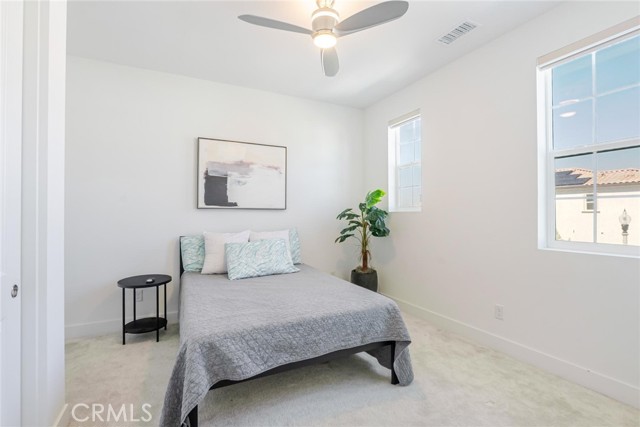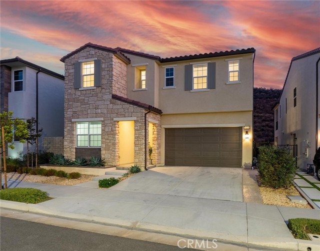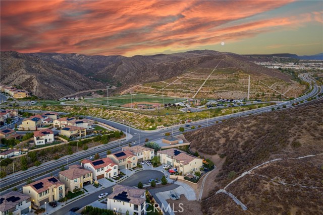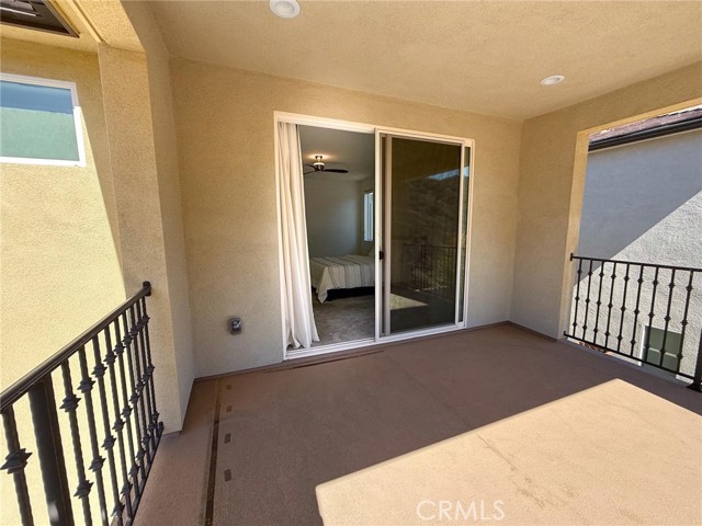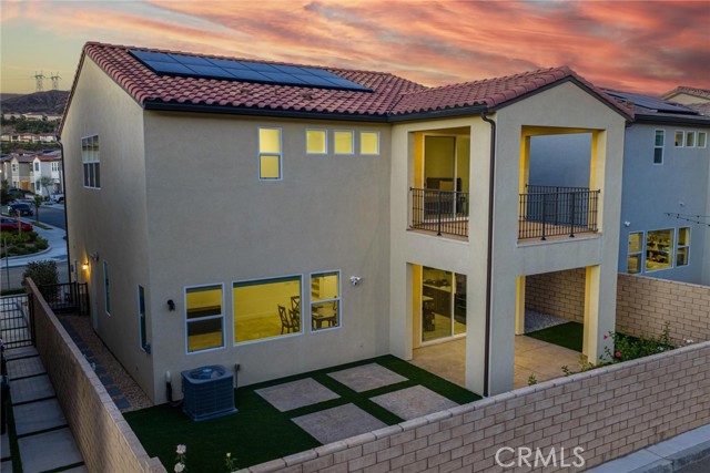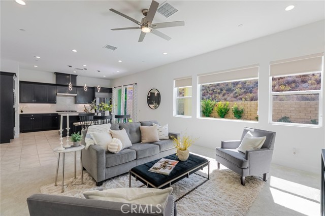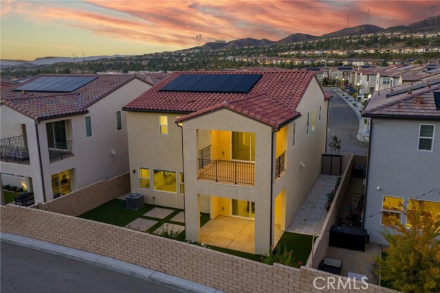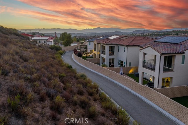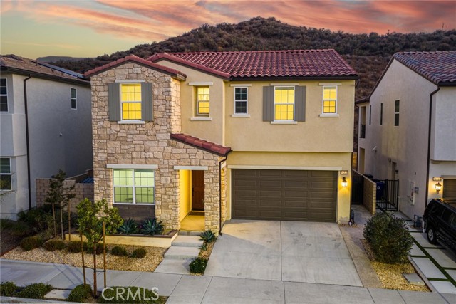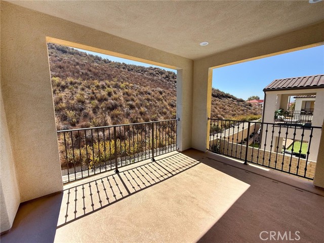 Toll Brothers Gated community in Plum Canyon! This sharp 4 bedroom, 3 bathroom (plus a huge loft) home redefines luxury living. Spanning just under 2,400 sqft, step inside to discover an open concept, where soaring 10 ft ceilings create an inviting ambiance. This sought after floorplan offers a full bedroom with a walk-in closet and full bathroom. The bathroom features a quartz countertop and black vanity. The gourmet kitchen boasts sleek black cabinetry, all with soft close, quartz countertops and backsplash, stainless steel appliances, center island, and good-size pantry for effortless organization. Adjacent is the family room, perfect for cozy evenings or grand gatherings. Recessed lighting and window coverings throughout the entire house. Primary suite is a private retreat, featuring a spa inspired bathroom with a HUGE walk-in shower, dual vanities, complemented by a generous walk-in closet. Your own private balcony of the primary with breathtaking mountain views. Two additional bedrooms are located on the upper level along with the guest bathroom which has dual vanities as well. The loft is massive! Could be used as game room or converted into theater room. Step outside into the California Room, which makes it great for entertaining, a lush low maintenance yard with synthetic turf and hardscape and mountain views with complete privacy. Additional highlights include a smart home system, energy saving solar panels that are fully OWNED, tankless water heater and 2-car garage. HOA includes a pool, spa, BBQ, firepit, dog park and an unbelievable park close by. Nearby restaurants, shopping and schools. NO MELLO ROOS!