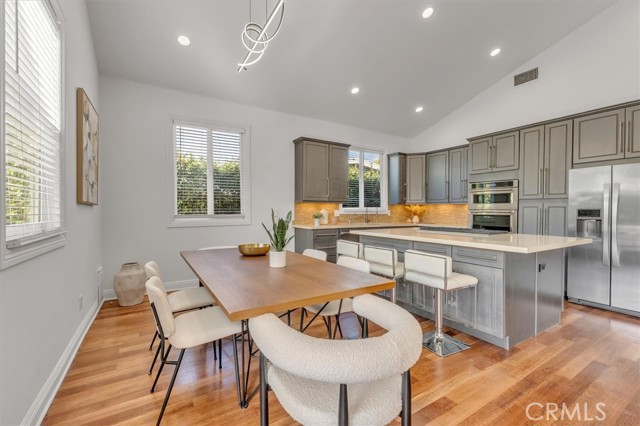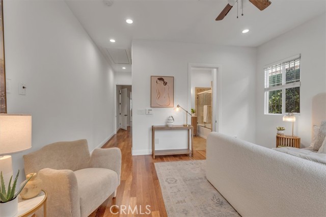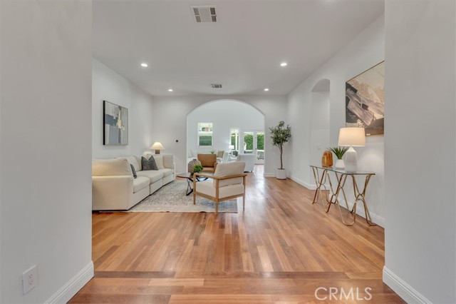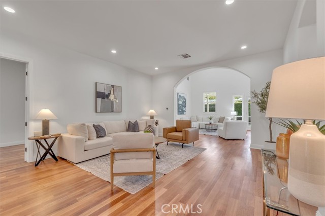 Welcome to this stunning Encino Village residence! This beautifully updated home features 4 bedrooms plus a complete attached Guest Studio/ADU (converted garage with a private entrance, kitchenette, and full bathroom) — offering incredible flexibility for extended family, guests, or rental income. Enjoy 4 stylishly updated bathrooms with new vanities, a bright open floor plan, and real red oak hardwood floors complemented by elegant crown molding. The spacious living and family rooms boast high ceilings and a cozy Fireplace, creating the perfect setting for both relaxation and entertaining. The modern eat-in kitchen showcases sleek quartz countertops, a central island with cooktop, stainless steel appliances, and a welcoming dining area overlooking the private patio and heated pool — perfect for indoor-outdoor California living. Located in the highly sought-after Encino Village neighborhood, within the boundaries of award-winning Encino Charter Elementary School, this home offers prime access to the 101 and 405 freeways, local parks, tennis courts, bike paths, the Encino Community Center, and Balboa Park & Golf Course. Move-in ready and turnkey — this home truly has it all!